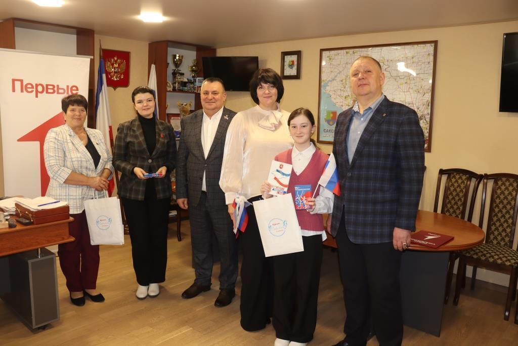 В День Общекрымского референдума и к 12 годовщине воссоединения Крыма с Россией юные жители Сакского района получили паспорта гражданина Российской Федерации в рамках Всероссийского проекта «Мы - граждане России!» Движения Первых.