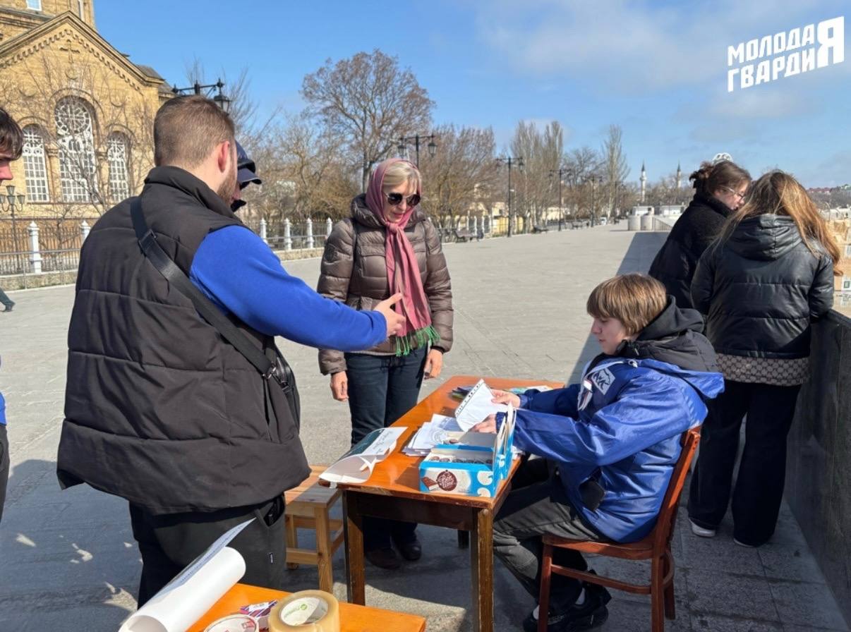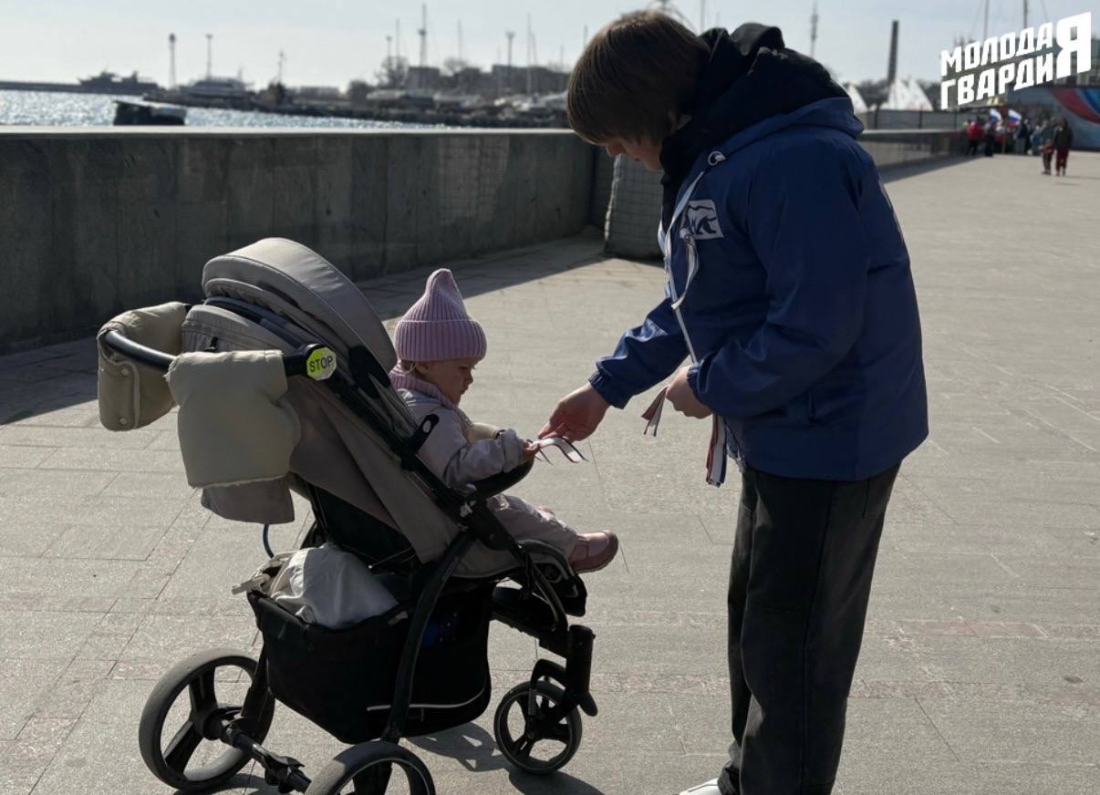 Активисты Евпаторийского отделения «Молодой Гвардии» поздравили жителей и гостей города с Днём воссоединения Крыма с Россией