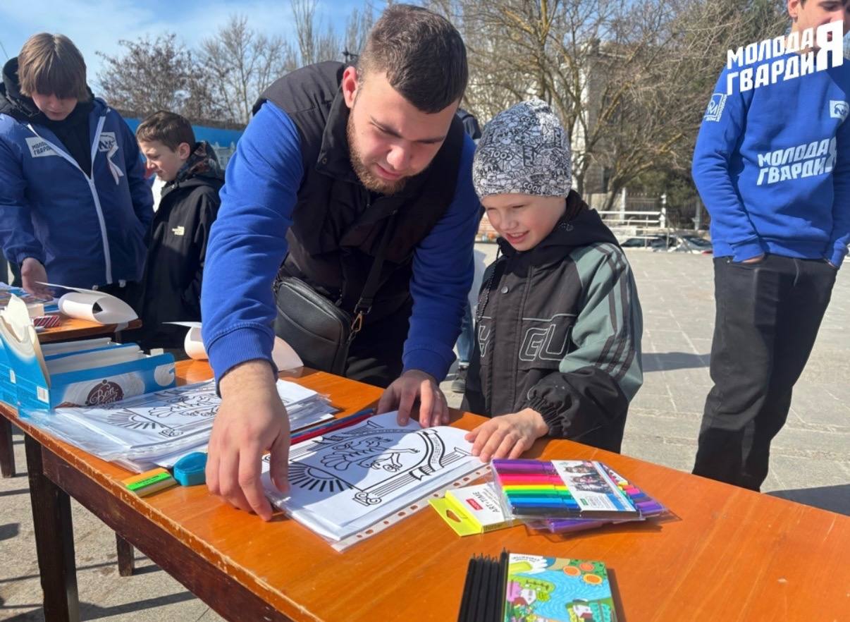 Совместно с сотрудниками компьютерного клуба «REVIVAL Евпатория» молодогвардейцы вышли на улицы города, где раздавали праздничную атрибутику, общались с горожанами, проводили квизы и мастер-классы, создавая атмосферу единства, сплочённости и настоящего праздника.