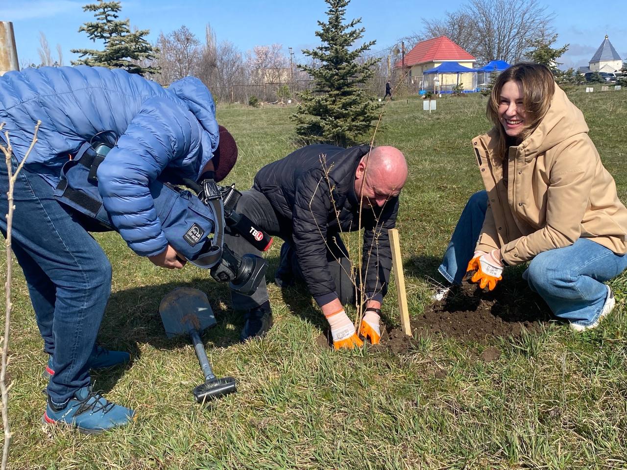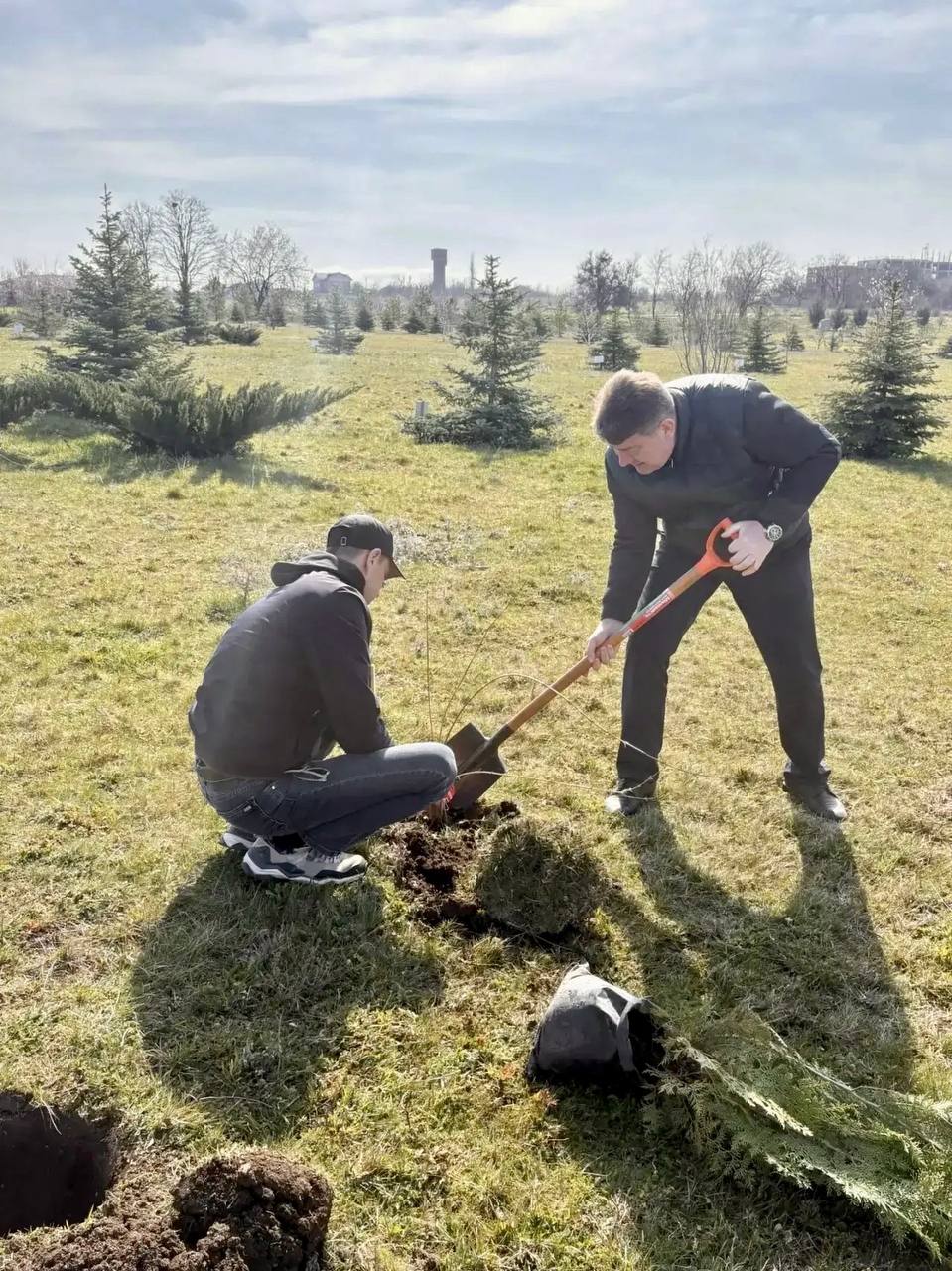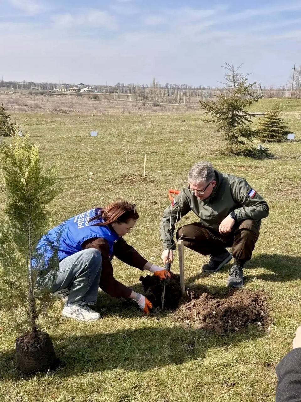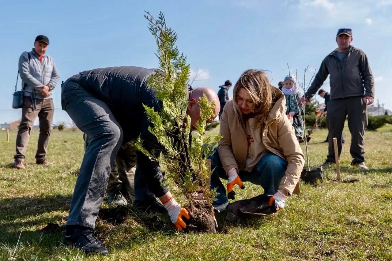 Вблизи Симферополя высадили 70 саженцев туи, березы, сосны, спиреи, форзиции
