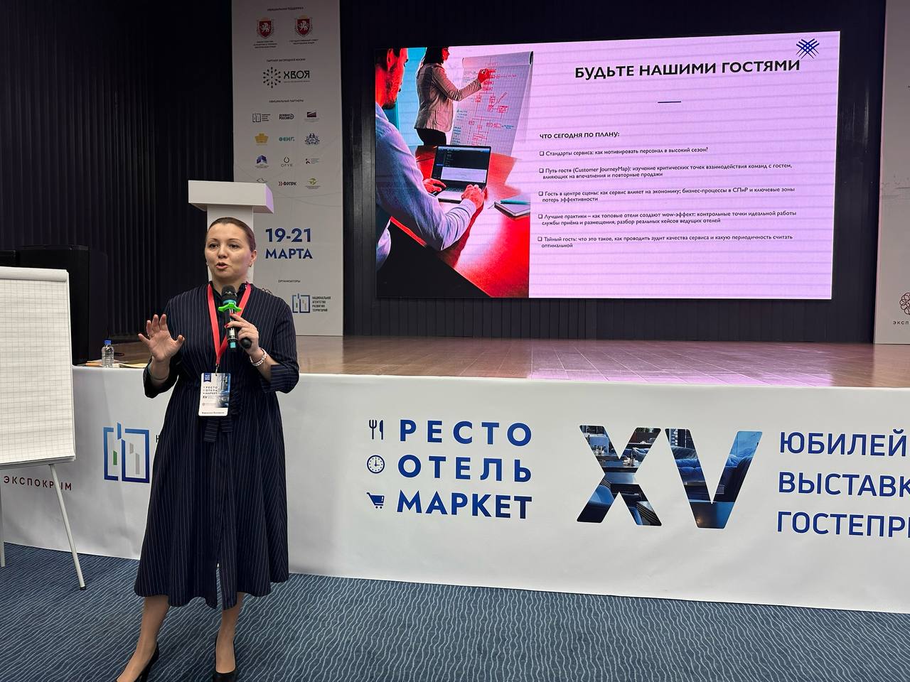 Министерством на площадке выставки в рамках Года крымского гостеприимства совместно с «Академия гостеприимства курорта «Мрия» и «ЭйБиАр Хоспиталити» проводятся обучающие мероприятия для представителей туриндустрии – линейного персонала отелей, санаториев, гостевых домов по теме «Крымское гостеприимство – сервис, который запоминается».