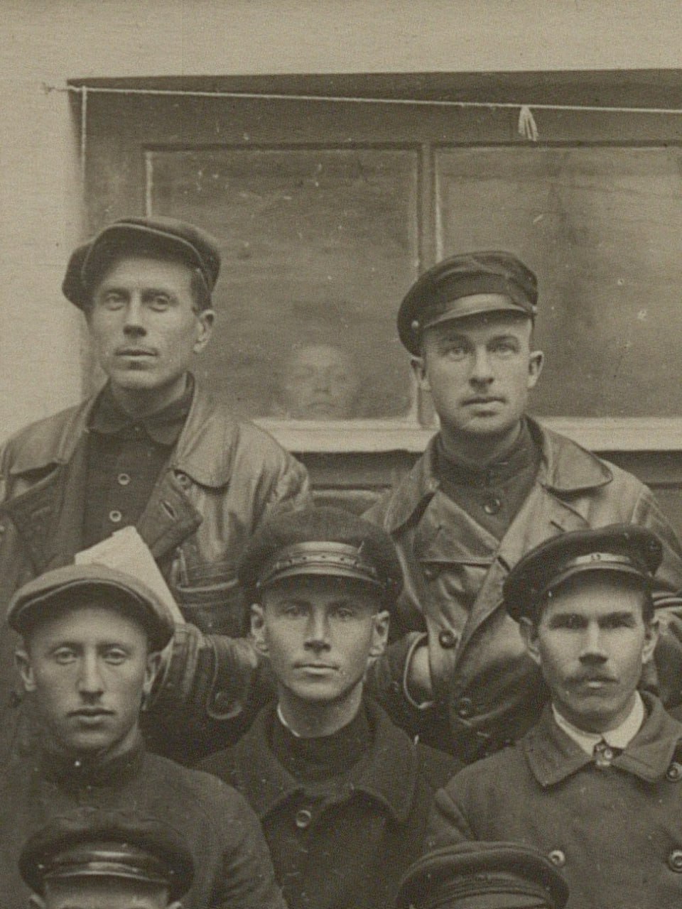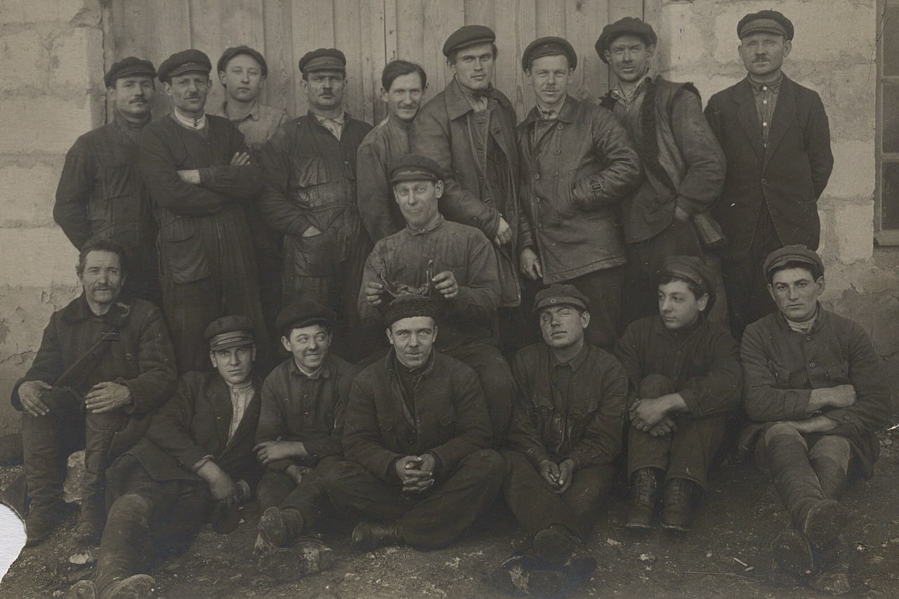 на втором – группа рабочих у ворот мастерской (1920-е годы), оставившая будущим поколениям немного хорошего настроения.