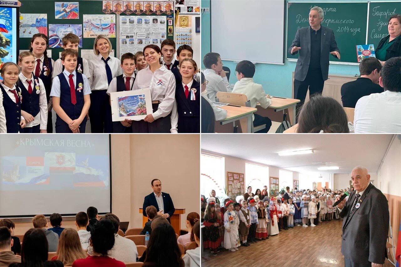 В рамках празднования 12-й годовщины Общекрымского референдума 2014 года и воссоединения Крыма с Россией депутаты Государственного Совета Республики Крым традиционно провели в общеобразовательных учреждениях полуострова парламентские уроки.