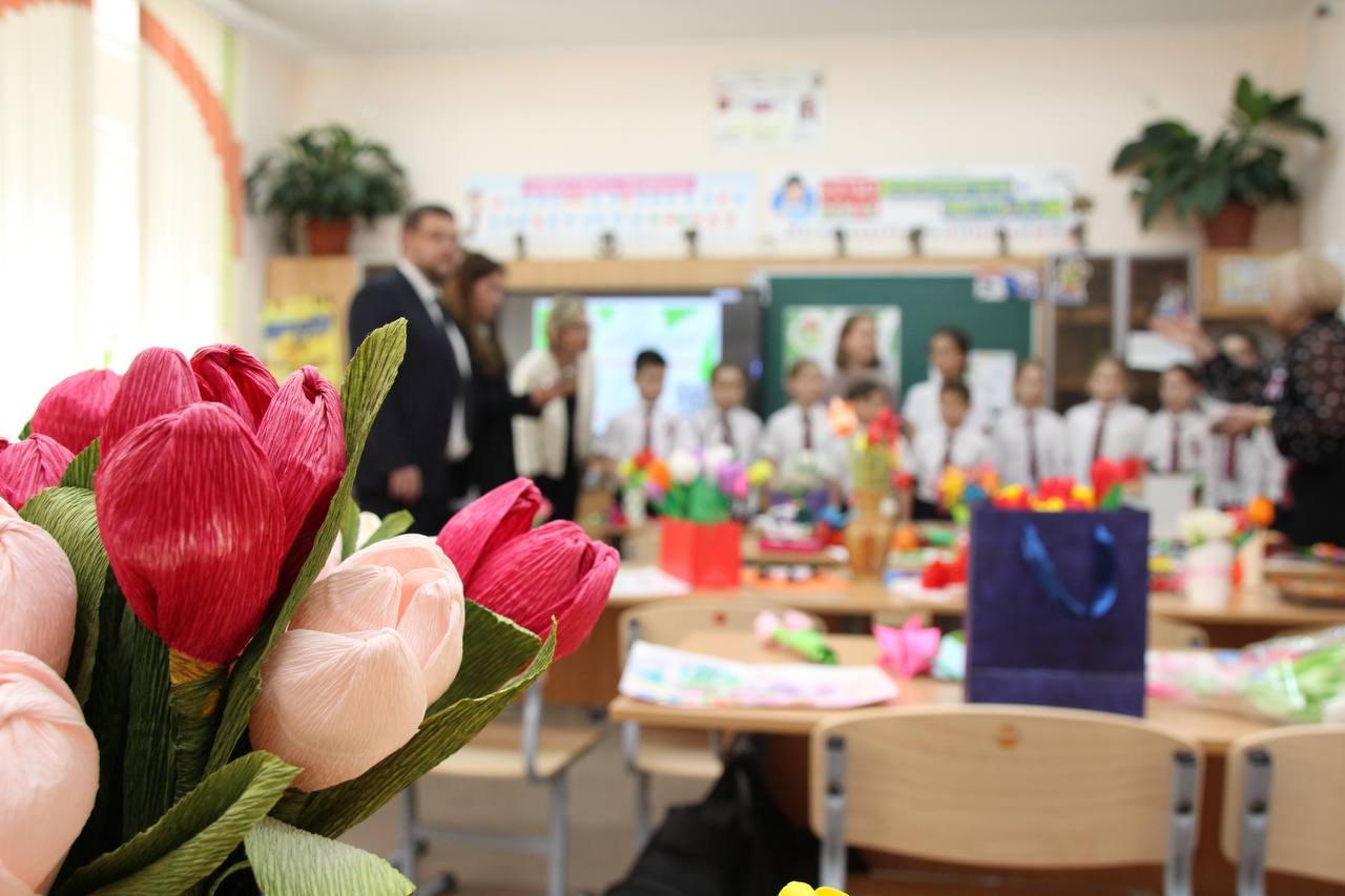 Ученики младших классов своими руками сделали тюльпаны из бумаги, фетра и картона, чтобы помочь тяжелобольным детям и семьям участников СВО. Инна Шишова внесла пожертвование (удобно по QR-коду!) и выбрала один из детских букетов.