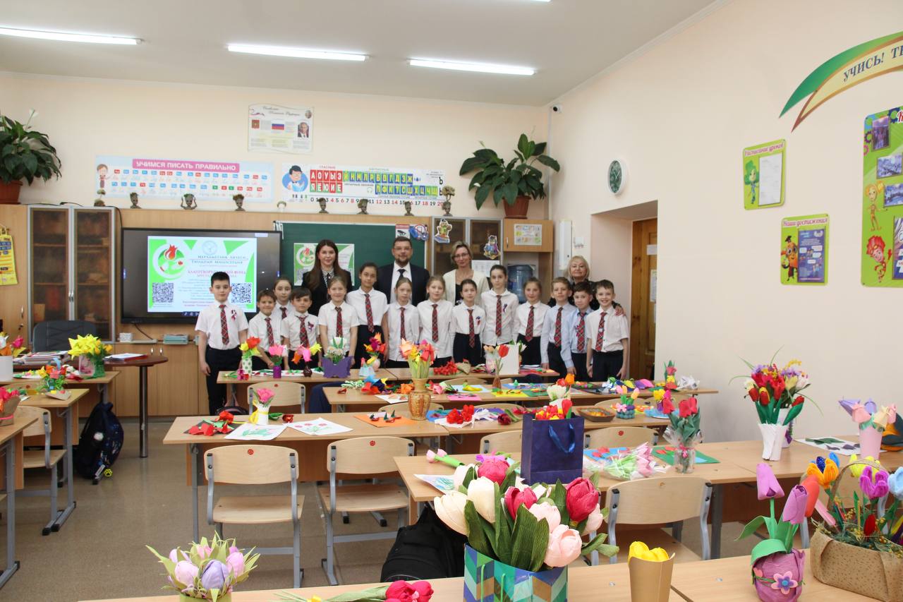 Инна Шишова, Елена Линькова и Вячеслав Доброрез поддержали акцию «Тюльпан милосердия» в школе-лицее им. А.С. Макаренко