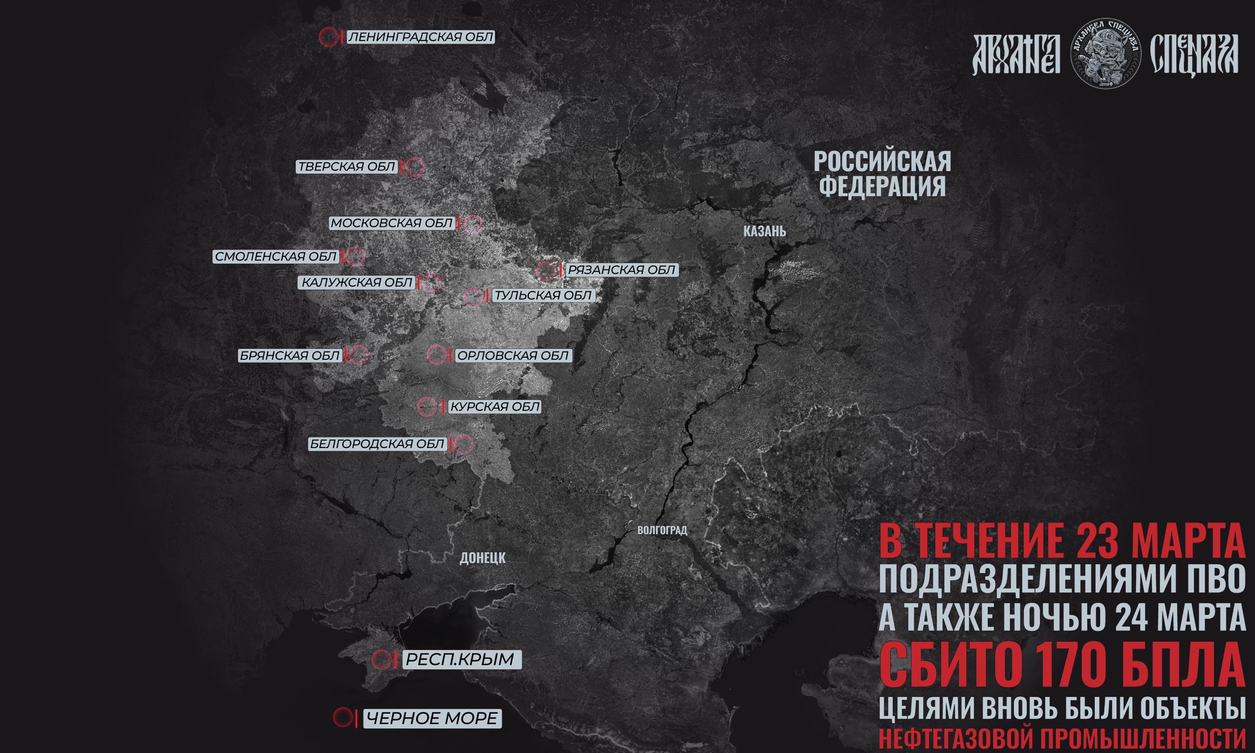 За прошедшие сутки подразделениями ПВО было сбито около 170 беспилотников, из которых 55 – прошедшей ночью.