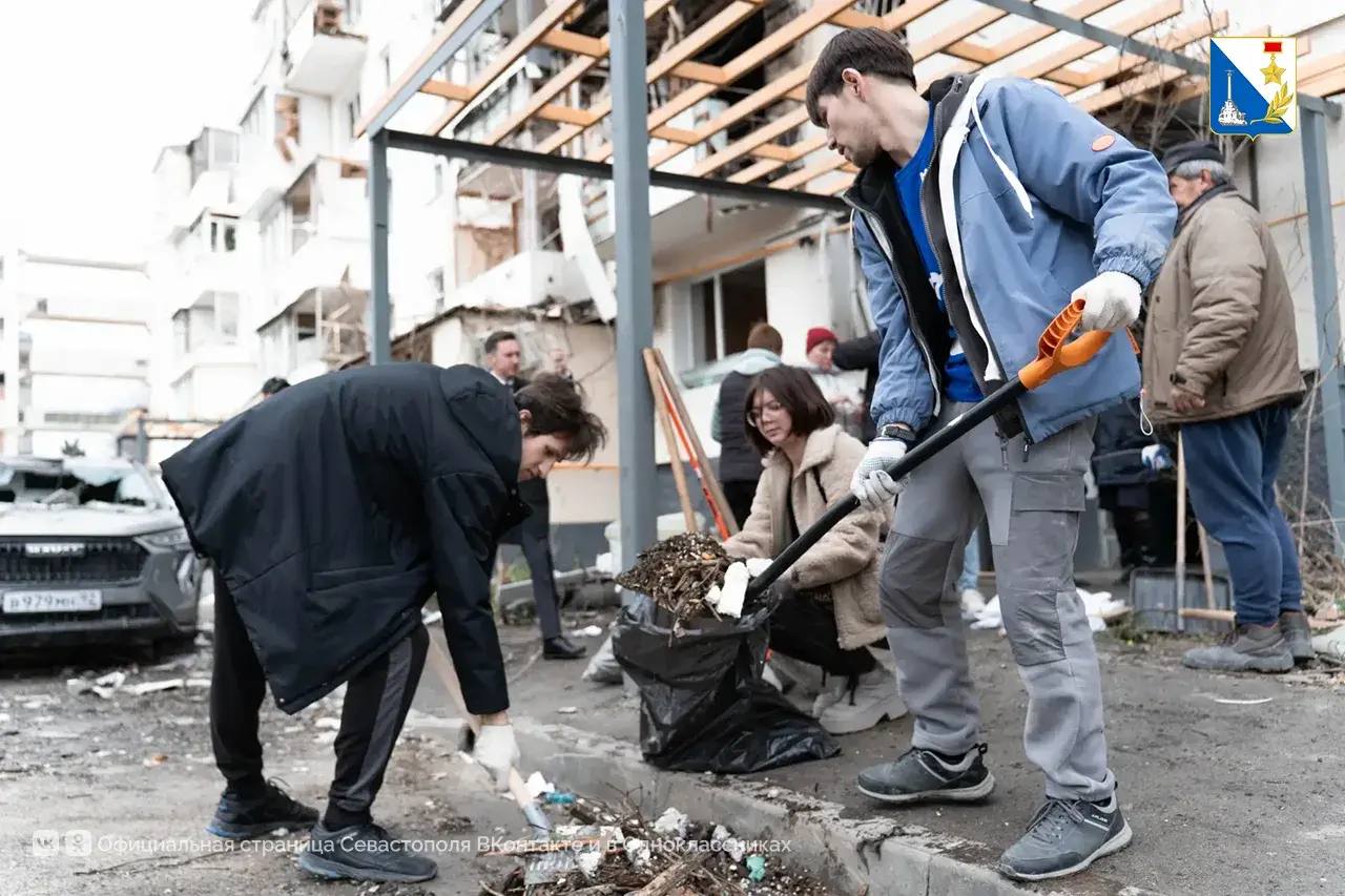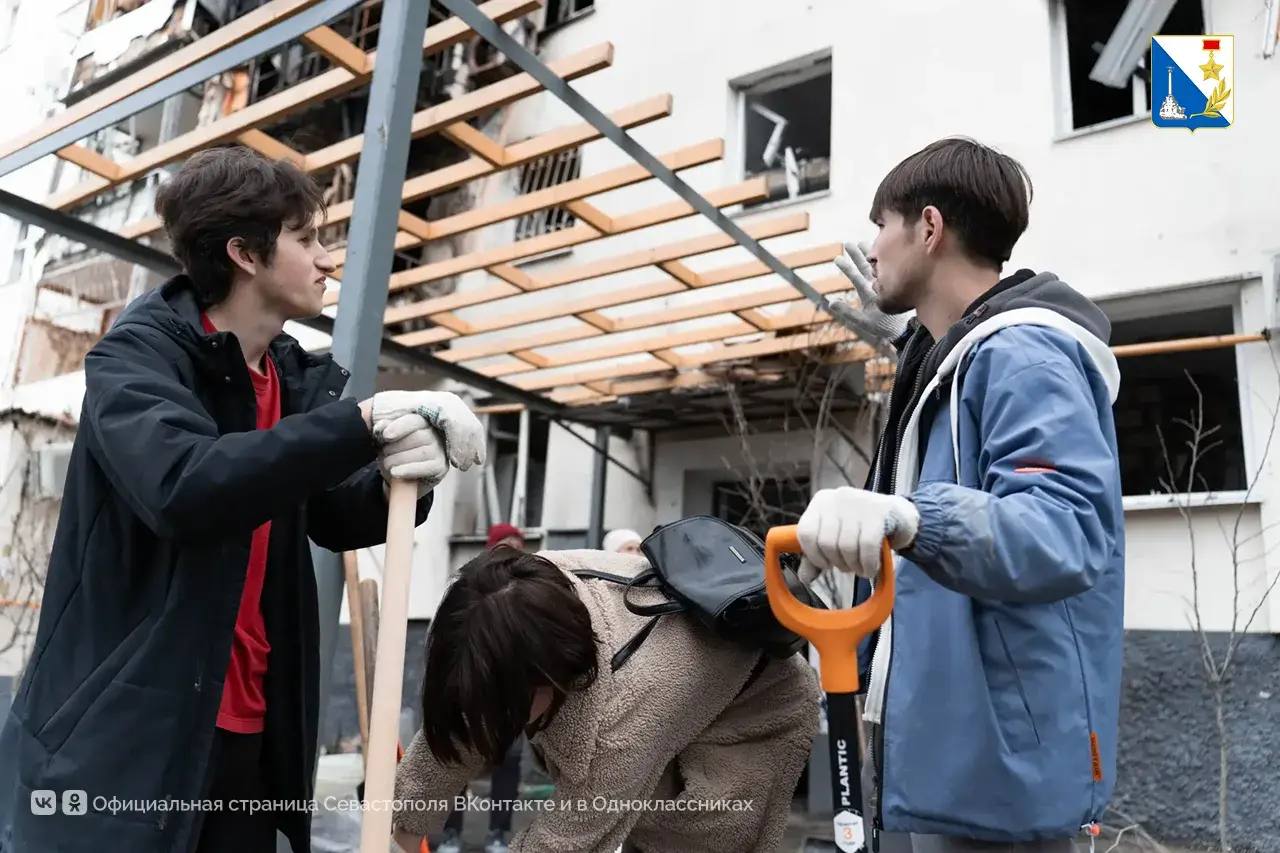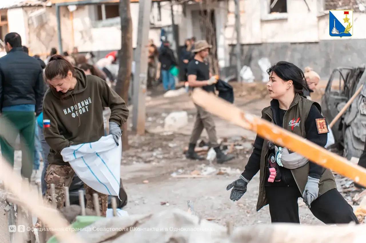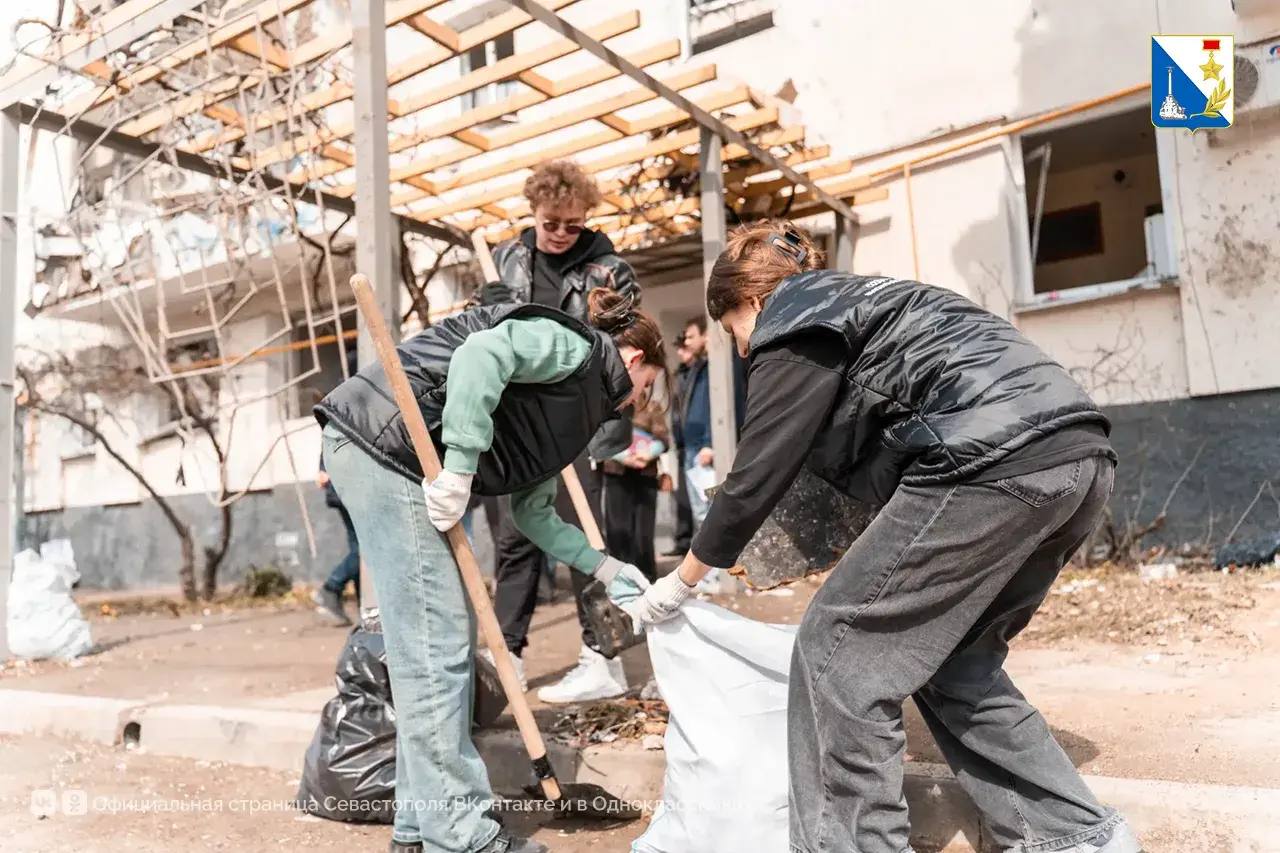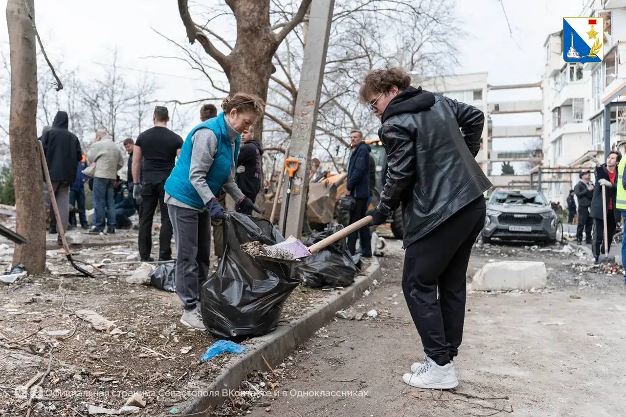 Активисты «Единой России», добровольцы, студенческий корпус спасателей, Народный фронт, «Молодая гвардия», «Здоровое Отечество», студотряды и неравнодушные севастопольцы убирают мусор во дворах и помогают вынести уцелевшие вещи.