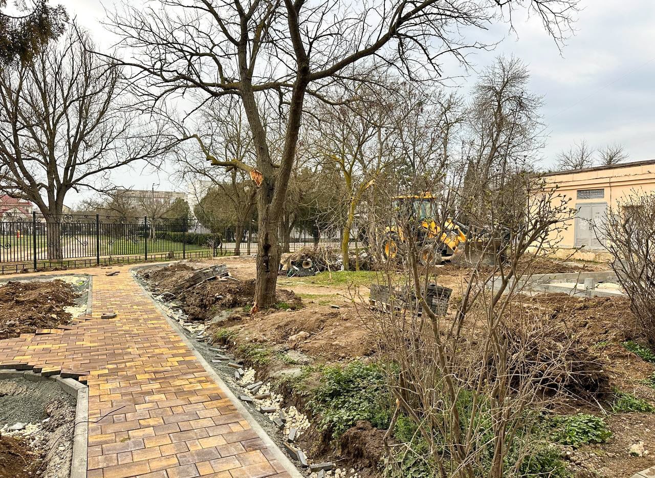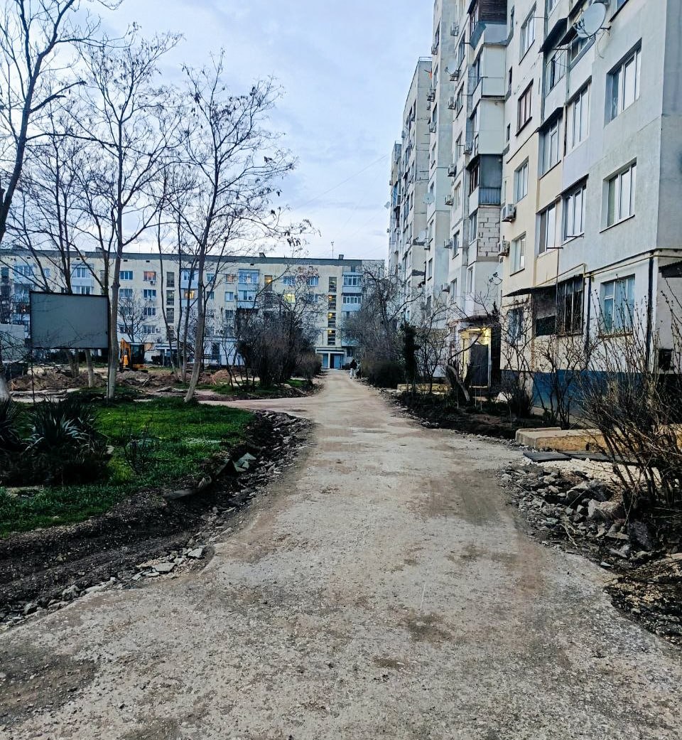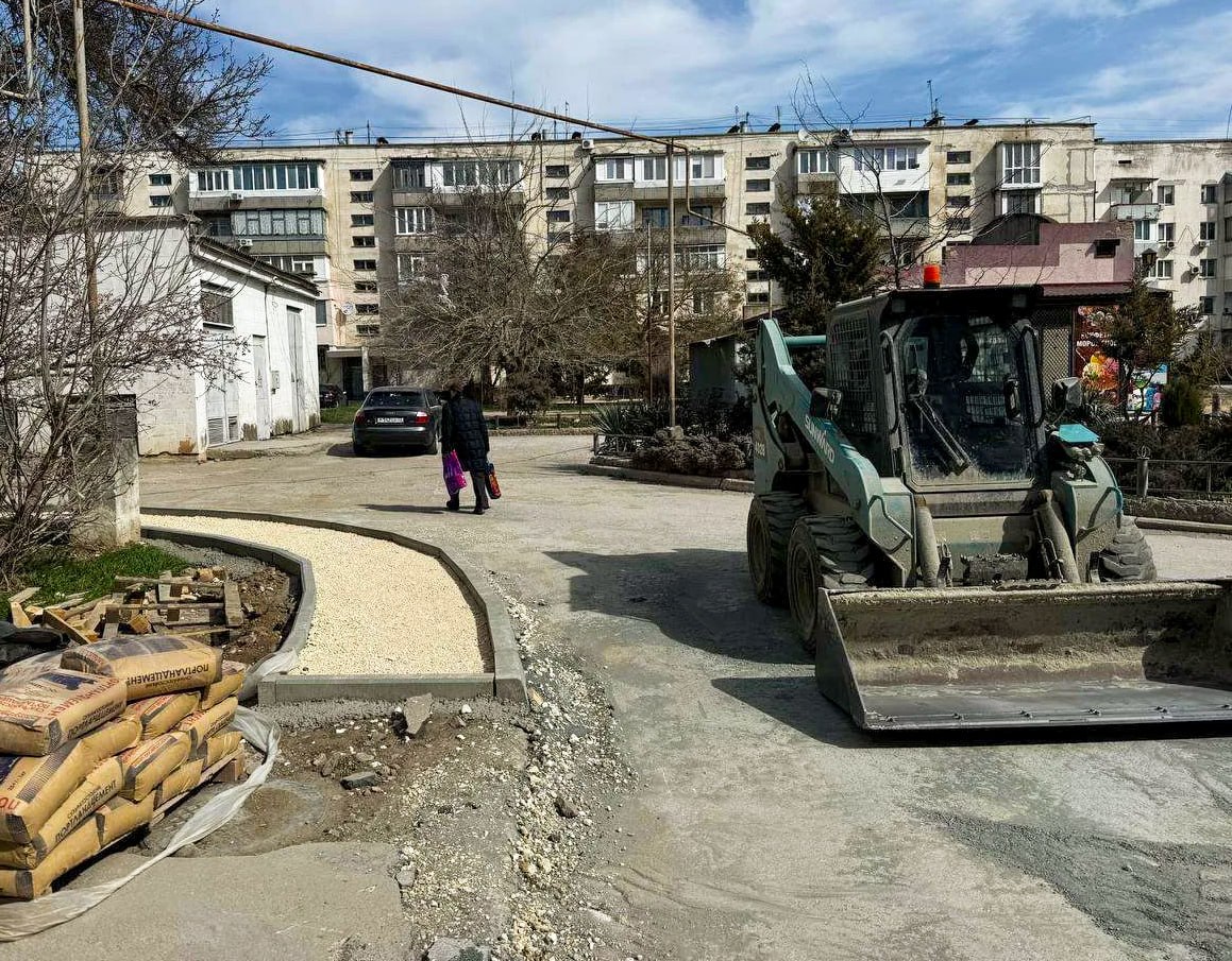 В Евпатории проводят работы по благоустройству дворов. Всего в этом году в городе обновят 8 территорий.