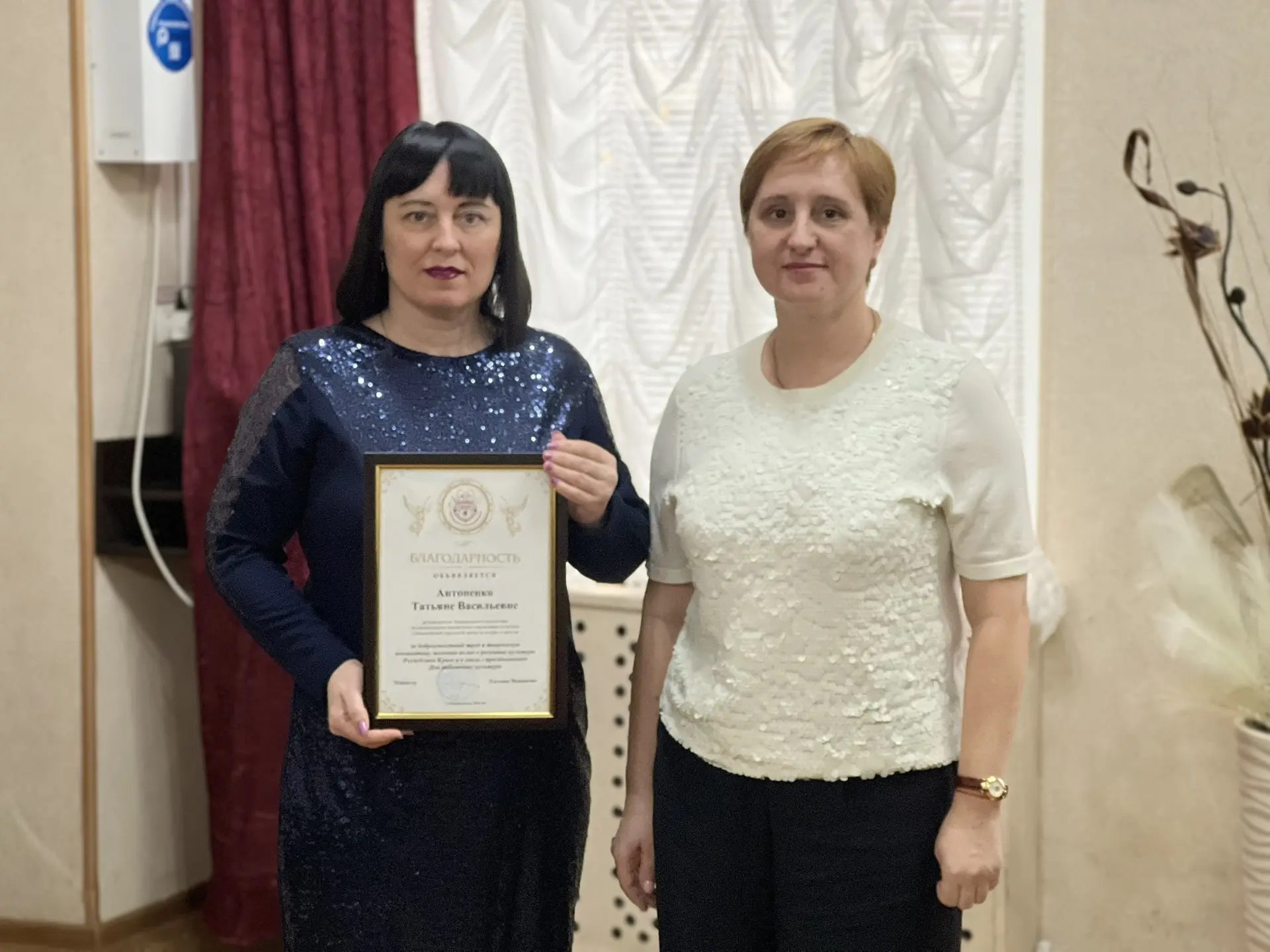 Сегодня свой профессиональный праздник отмечают работники сферы культуры. В актовом зале школы искусств первый заместитель главы администрации города Жанна Хмур совместно с заместителем председателя Джанкойского городского совета Еленой Пантелеевой поздравили представителей отрасли – сотрудников библиотек, дома культуры, образовательных учреждений сферы культуры и искусства.