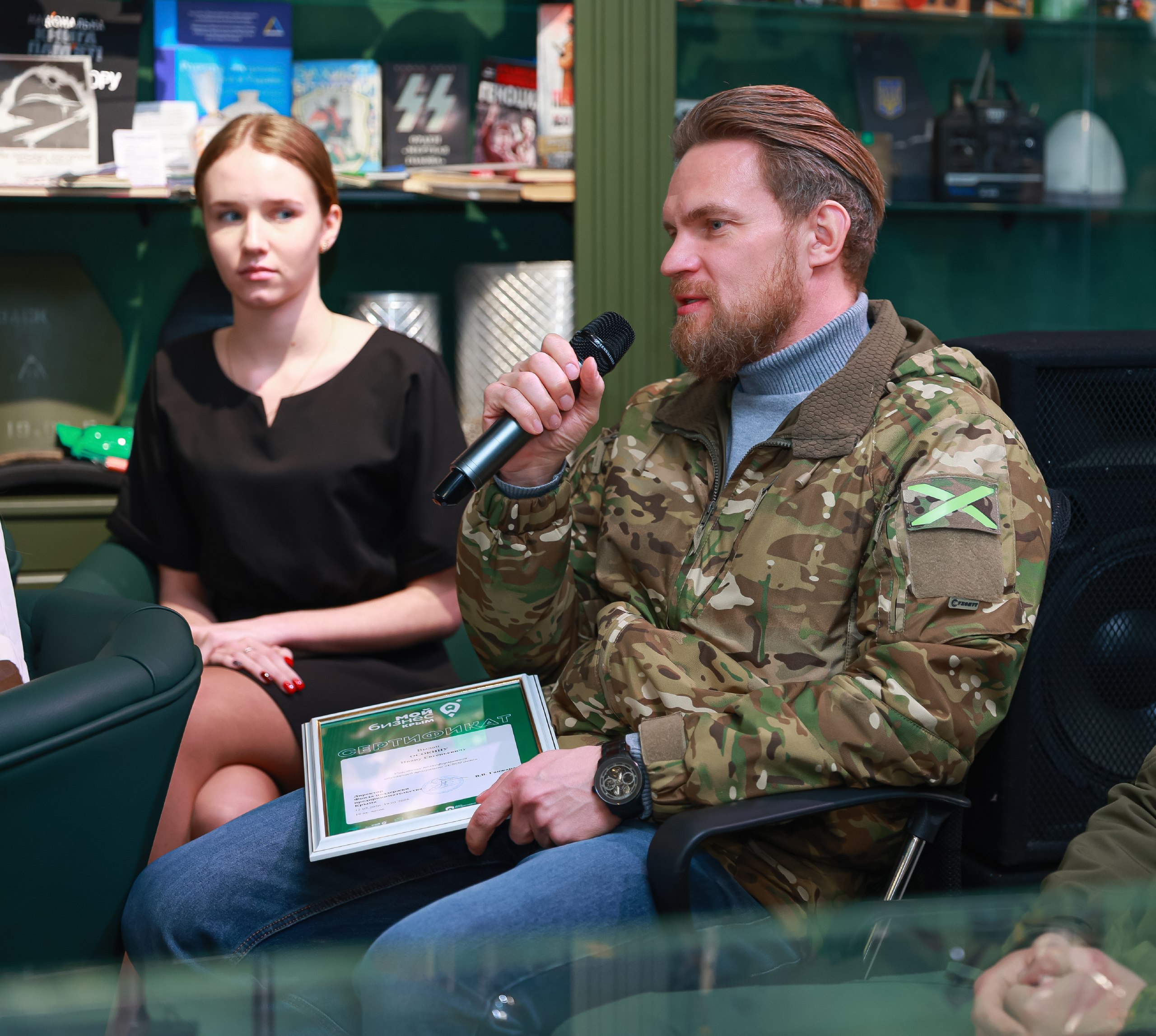 Сегодня в «Музее СВО» в Перевальном состоялся выпускной по случаю окончания очередного потока образовательной программы «СВОё дело». Выпускников курса ждала насыщенная программа: музыкальный номер, кейс-сессия, тренинг по самопрезентации и, конечно, экскурсия по музею.