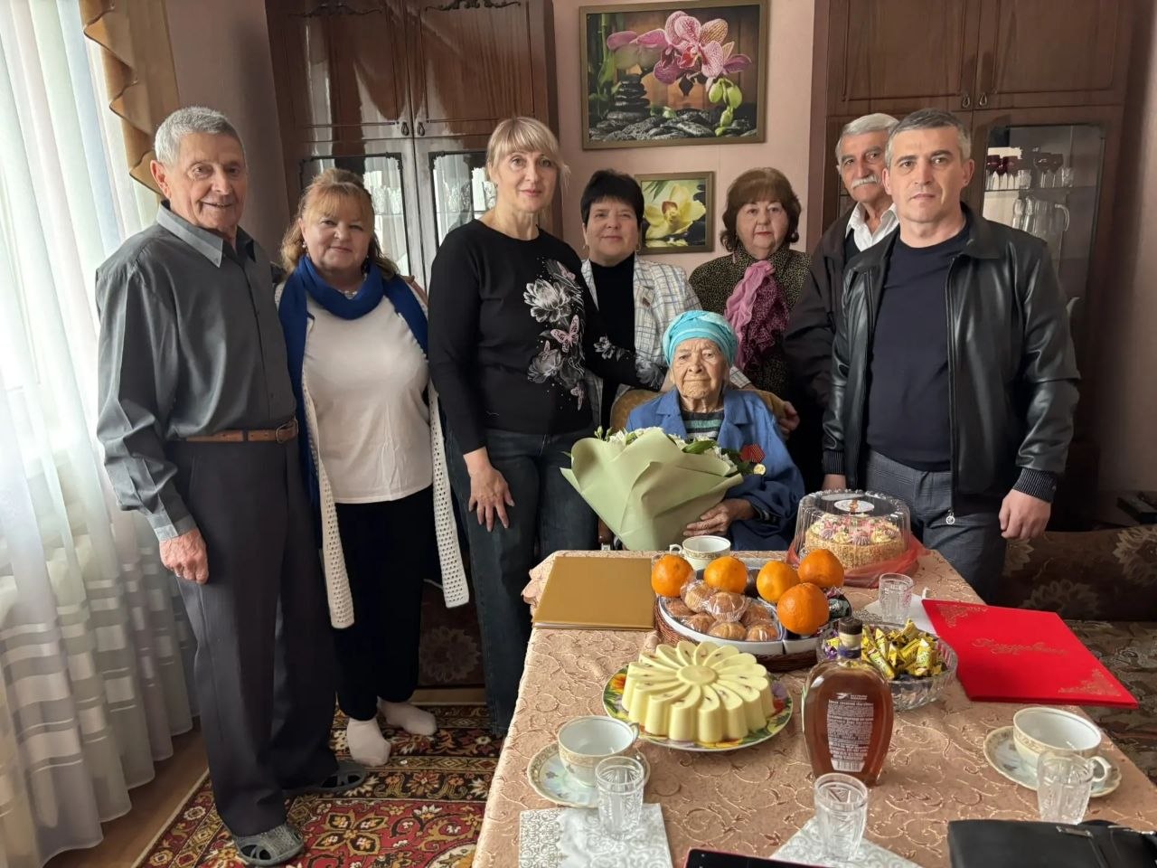 Со 100- летием поздравили юбиляра руководство Сакского района заместитель председателя Сакского районного совета Надежда Блохина, председатель районной ветеранской организации Зоя Довженко, глава администрации Уютненского сельского поселения Александр Щеголев, председатель первичной организации ветеранов с. Уютное Иван Аракелян.