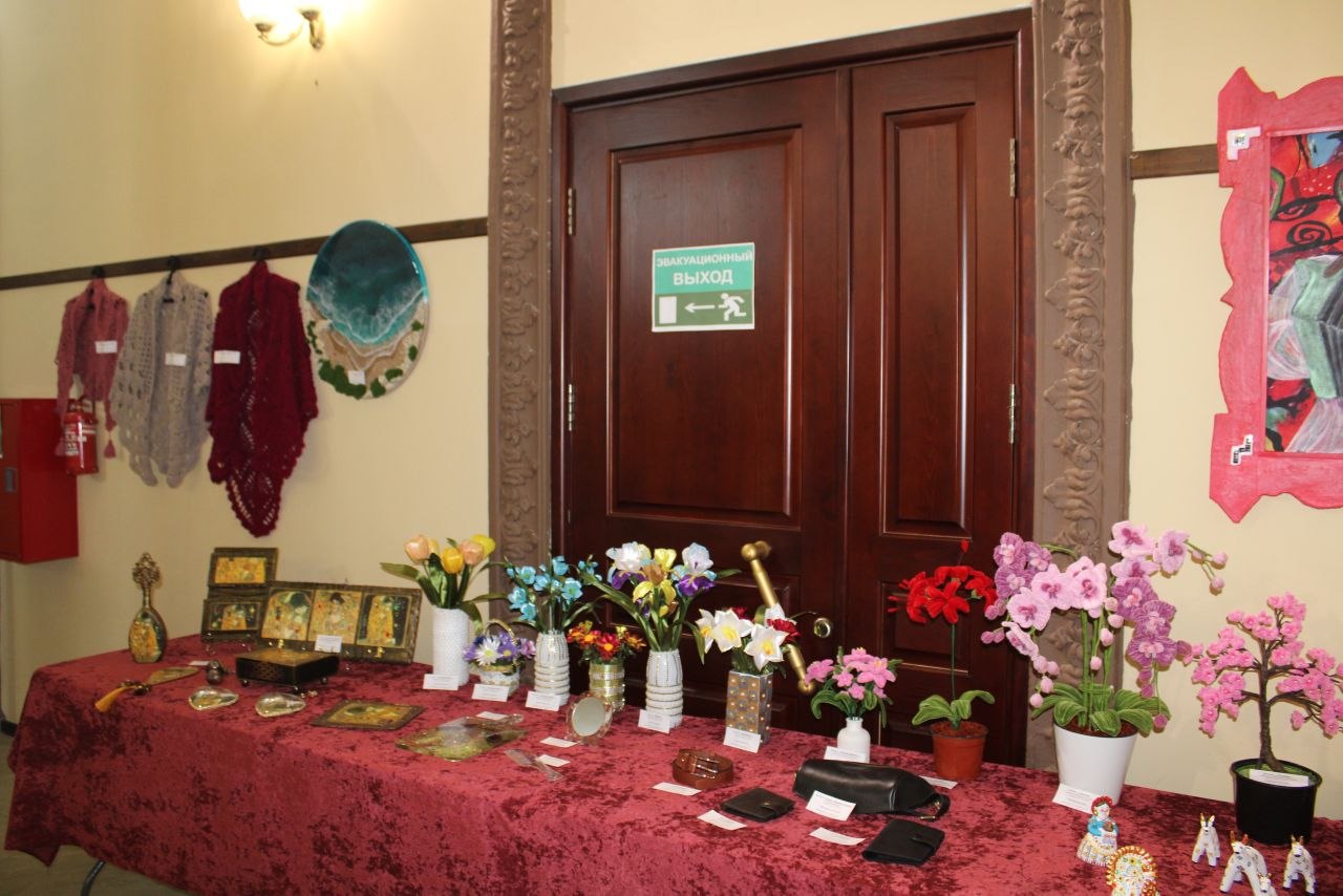 С первых минут гостей встречала атмосфера тепла и радушия. В фойе разместилась выставка декоративно-прикладного искусства, которая знакомила посетителей с многообразием национальностей, населяющих район.