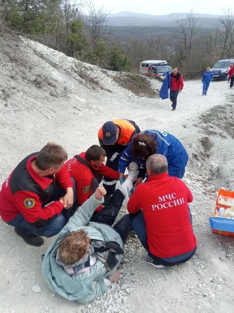На помощь пострадавшей выдвинулись спасатели, которые наложили ей шину и на носилках доставили к "скорой", сообщает МЧС Крыма.