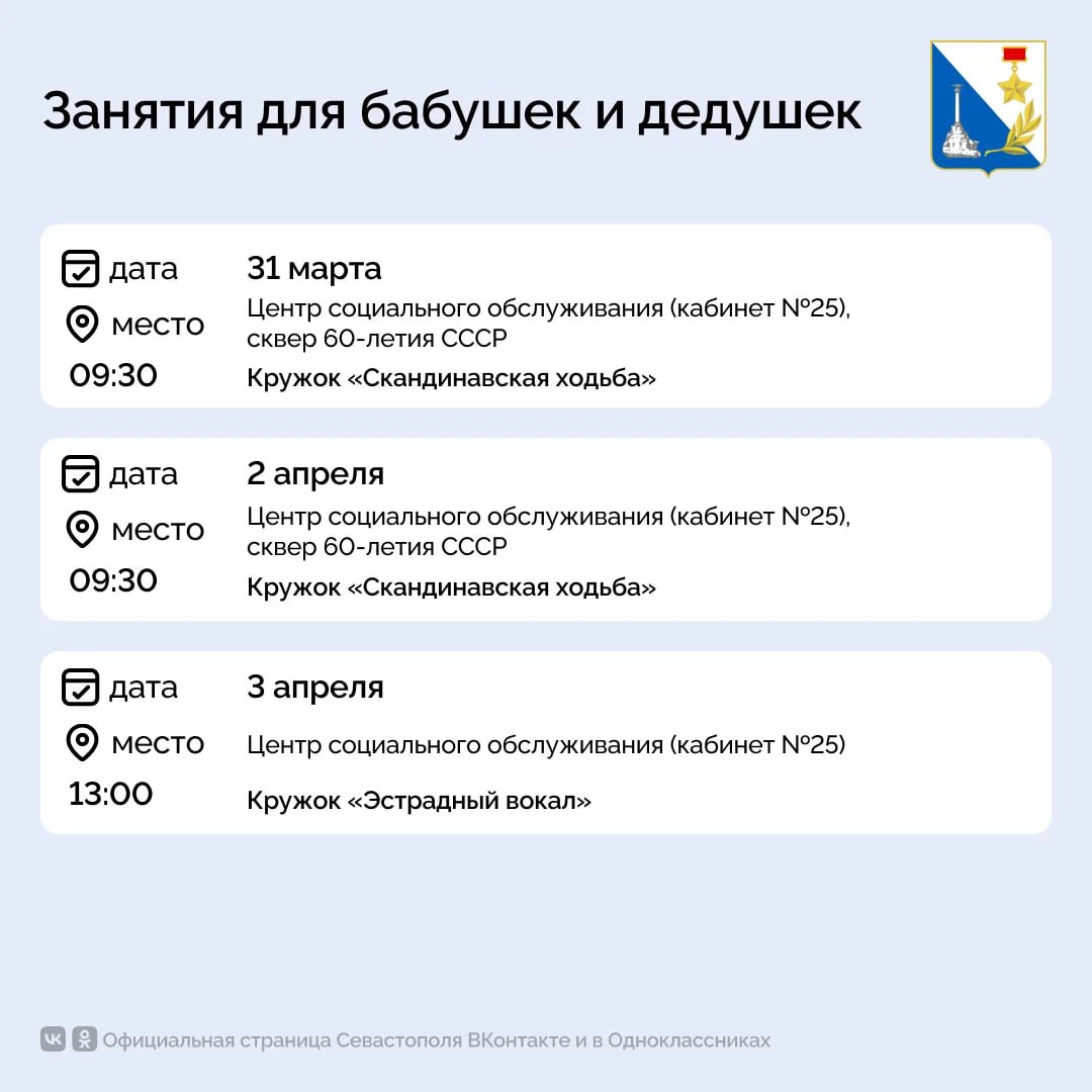 Севастопольских бабушек и дедушек ждут на мероприятиях центра соцобслуживания