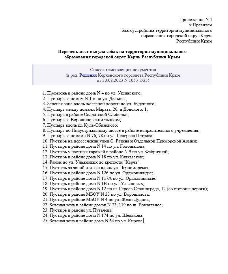 С перечнем мест выгула собак на территории Керчи можно ознакомиться выше.