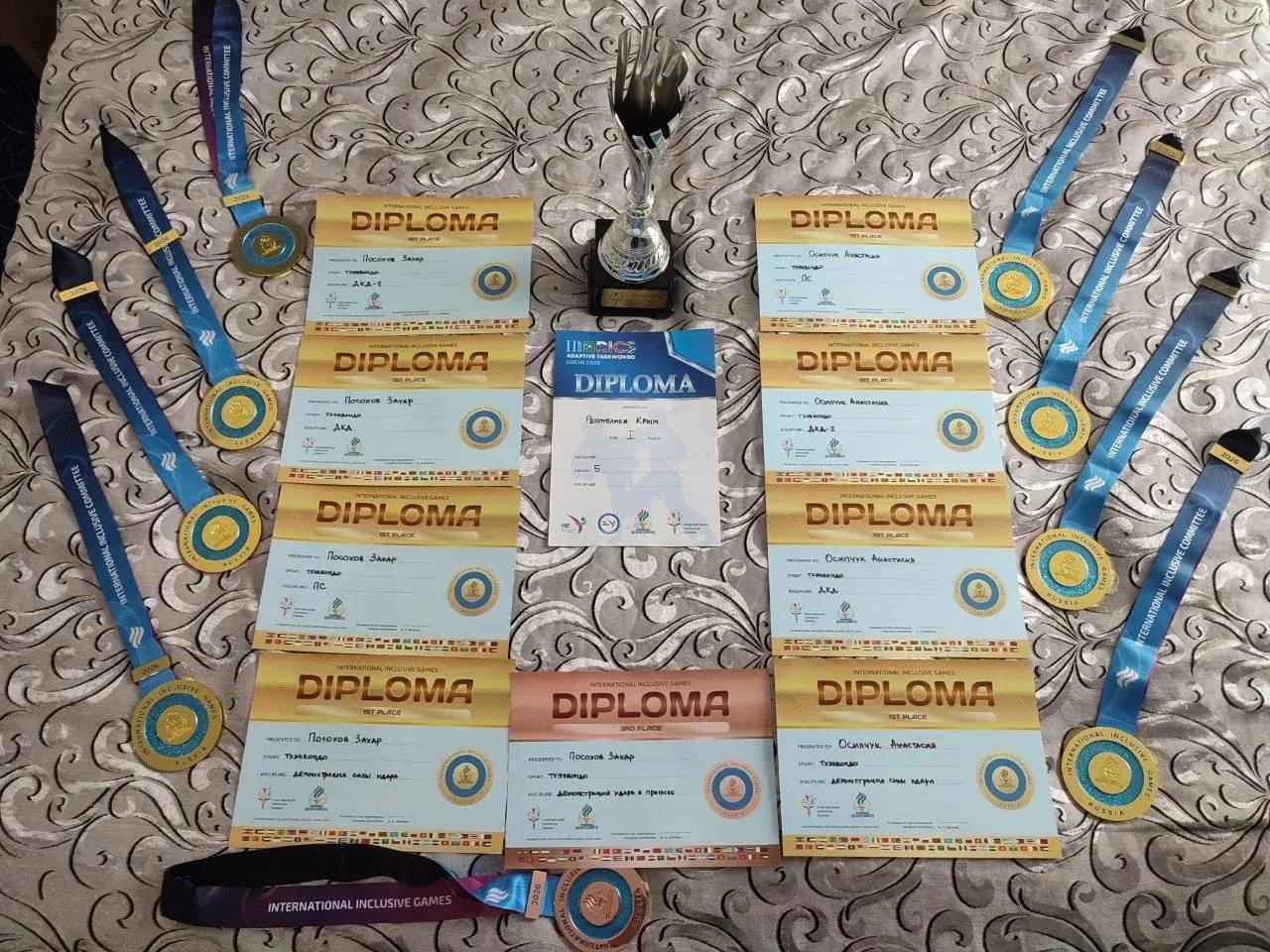 Восемь золотых медалей и одну бронзовую завоевали крымские спортсмены на Международном фестивале инклюзивных видов спорта «Импульс» в дисциплине адаптивное тхэквондо. Как сообщили в Минспорта РК, соревнования проходили с 25 по 28 марта в Сочи, в них приняли участие представители из 22 дружественных стран, а также спортсмены из различных регионов Российской Федерации. Крым на турнире в пяти различных дисциплинах представили Захар Посохов и Анастасия Осепчук. По итогам соревнований в командном зачете Республика Крым заняла 1 место.