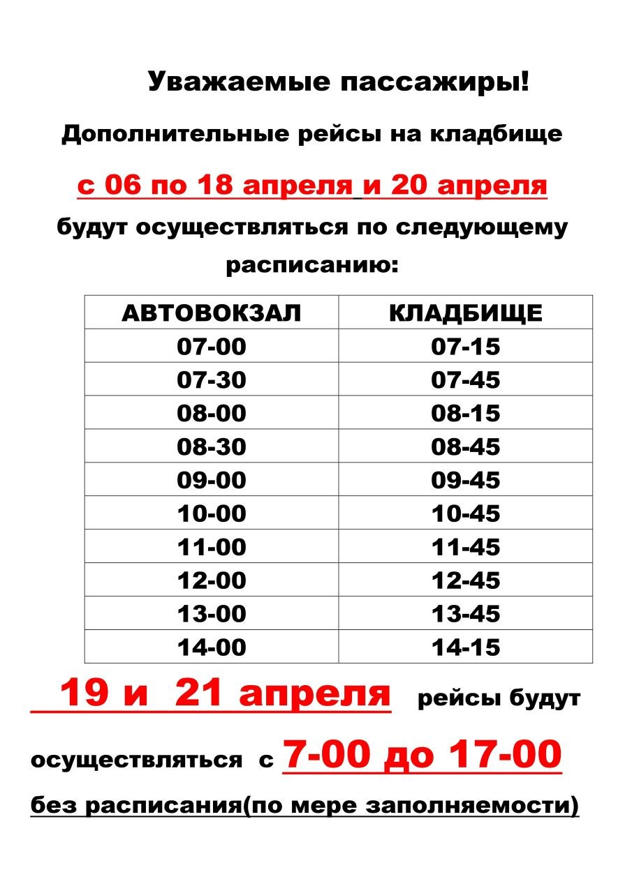 По Вашим многочисленным просьбам для посещения центрального городского кладбища с 06 по 21 апреля 2026 года будут организованы дополнительные рейсы муниципальных маршрутов, которые будут осуществляться по следующему расписанию: