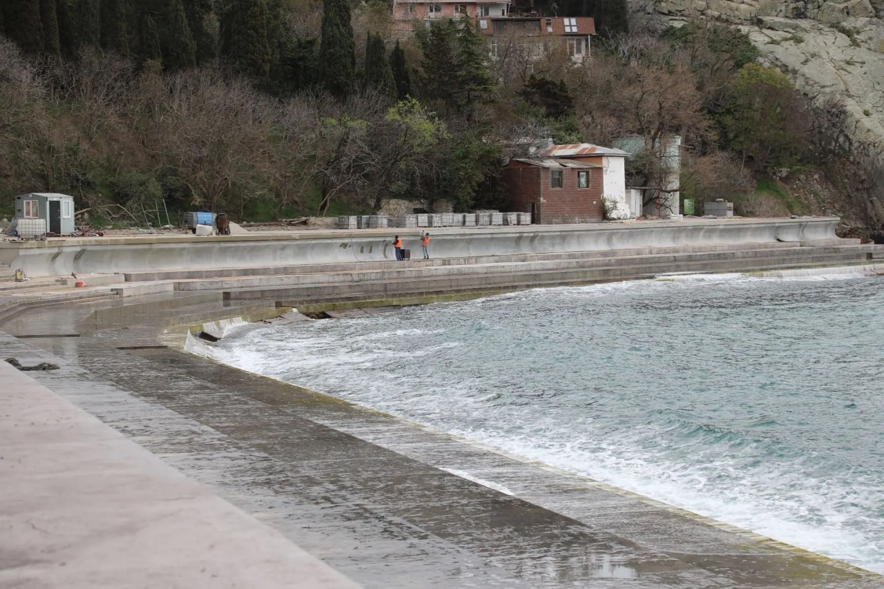 Ремонт берегоукрепительных сооружений на набережной под Алуштой идет с отставанием от графика из-за непогоды.