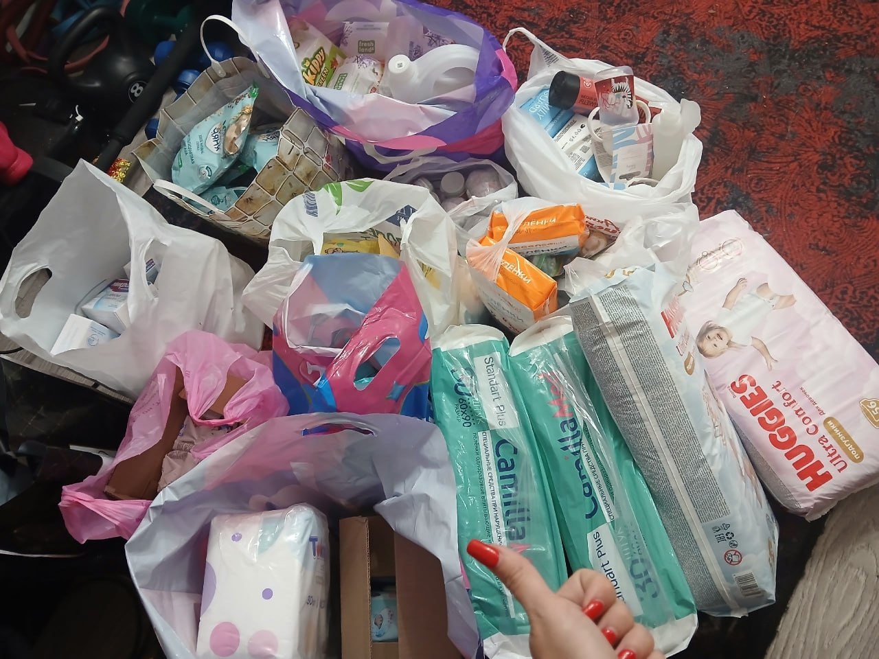 Помощь включала в себя средства гигиены, нужные малышам в первую очередь.