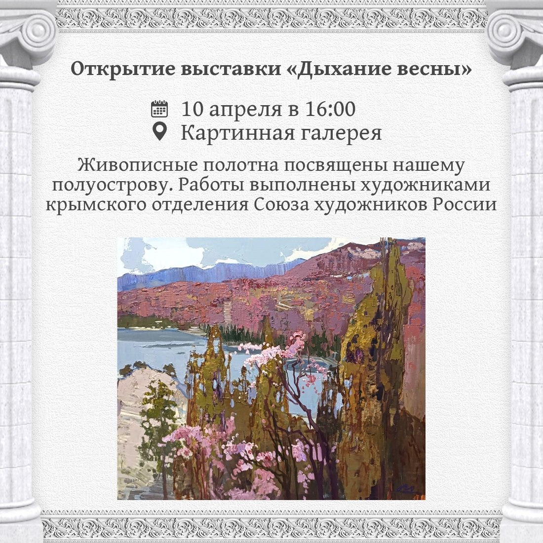 В апреле здесь можно будет насладиться творчеством крымских деятелей искусств, воздать дань уважения Родине и узнать больше о богатой истории нашего древнего города.
