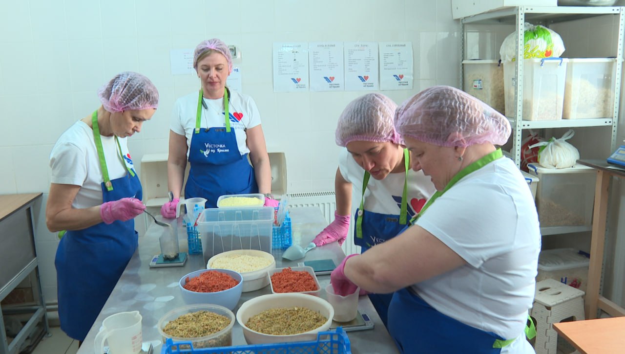 Справляться с такими объёмами помогает конвейерный способ: одни занимаются фасовкой, другие запаивают пакеты, наклеивают этикетки и формируют партии. Готовить сублимированные блюда стали осенью 2022-го. Ассортимент постепенно расширяли. Сегодня это – несколько видов сухих супов, борщей, молочные каши, омлеты и не только. В прошлом году собрали и отправили более миллиона фронтовых обедов. С начала 2026-го – уже 300 тысяч первых и вторых блюд.