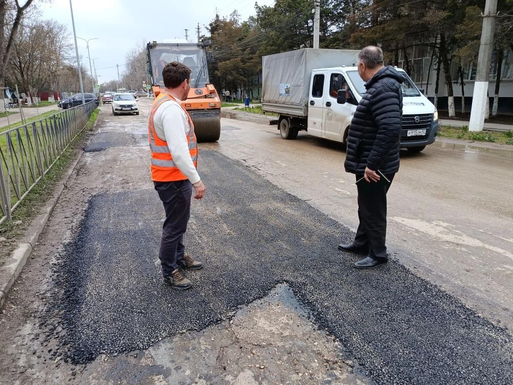 Ямочный ремонт на ул.Тельмана в пгт Красногвардейское успешно завершен. Общая площадь отремонтированного дорожного покрытия - 107 квадратных метров, работы проводились карточным методом. Контроль за ходом и завершением работ осуществлял заместитель Главы администрации района Валерий Пожванюк.