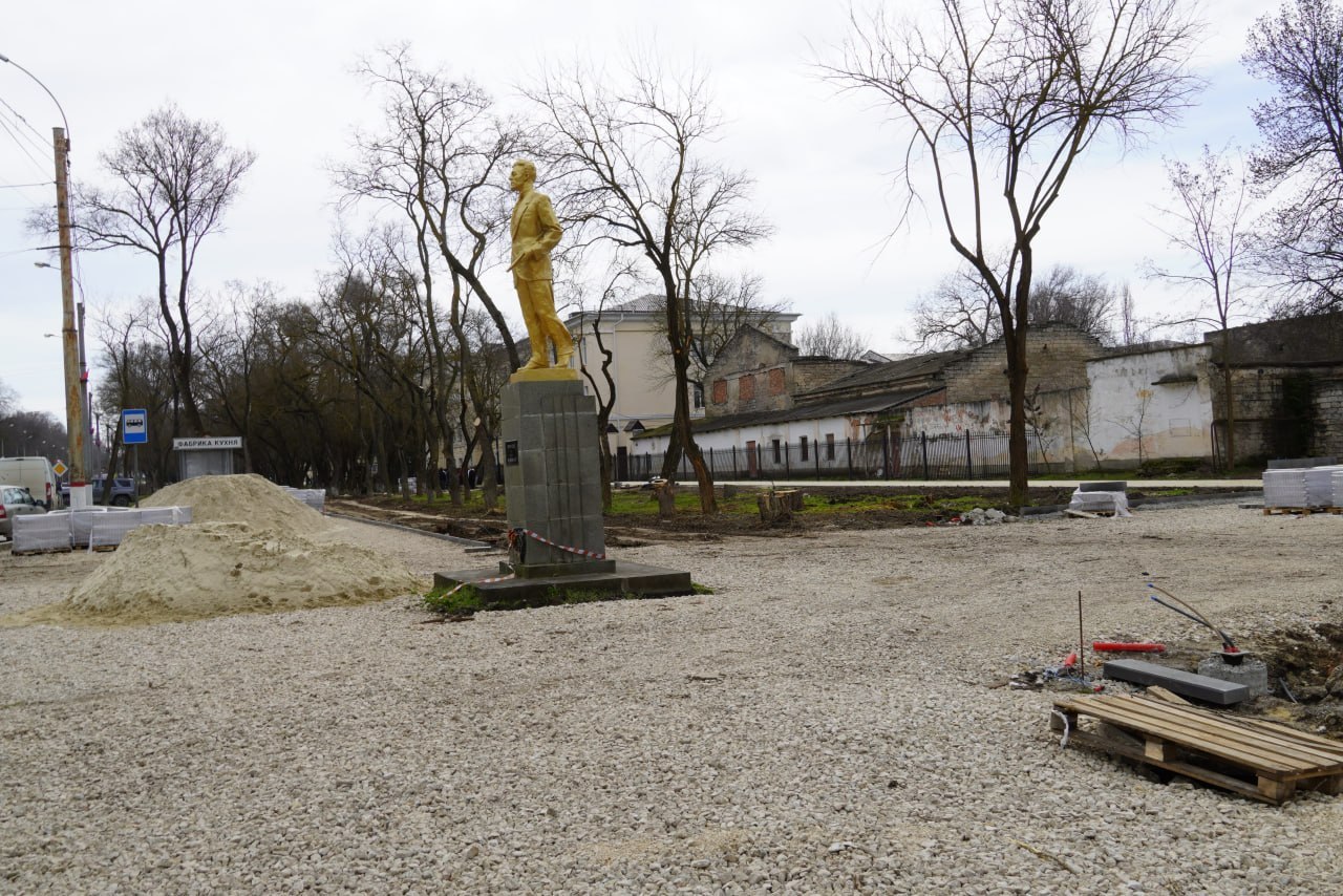 на участках со стороны памятника выполнена подготовка под укладку плитки, уложено щебеночное основание