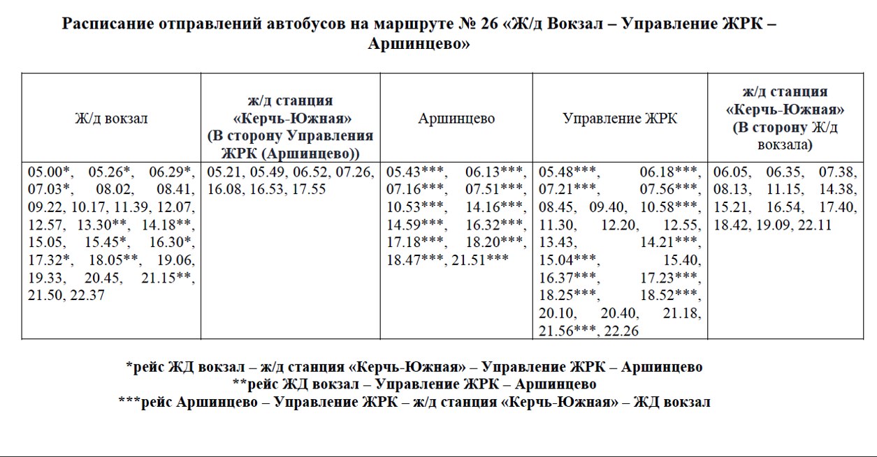 С 03.04.2026 г. в ТЕСТОВОМ режиме будет изменено расписание движения автобусов на муниципальном маршруте регулярных перевозок № 26 «Ж/д Вокзал – Управление ЖРК – Аршинцево».