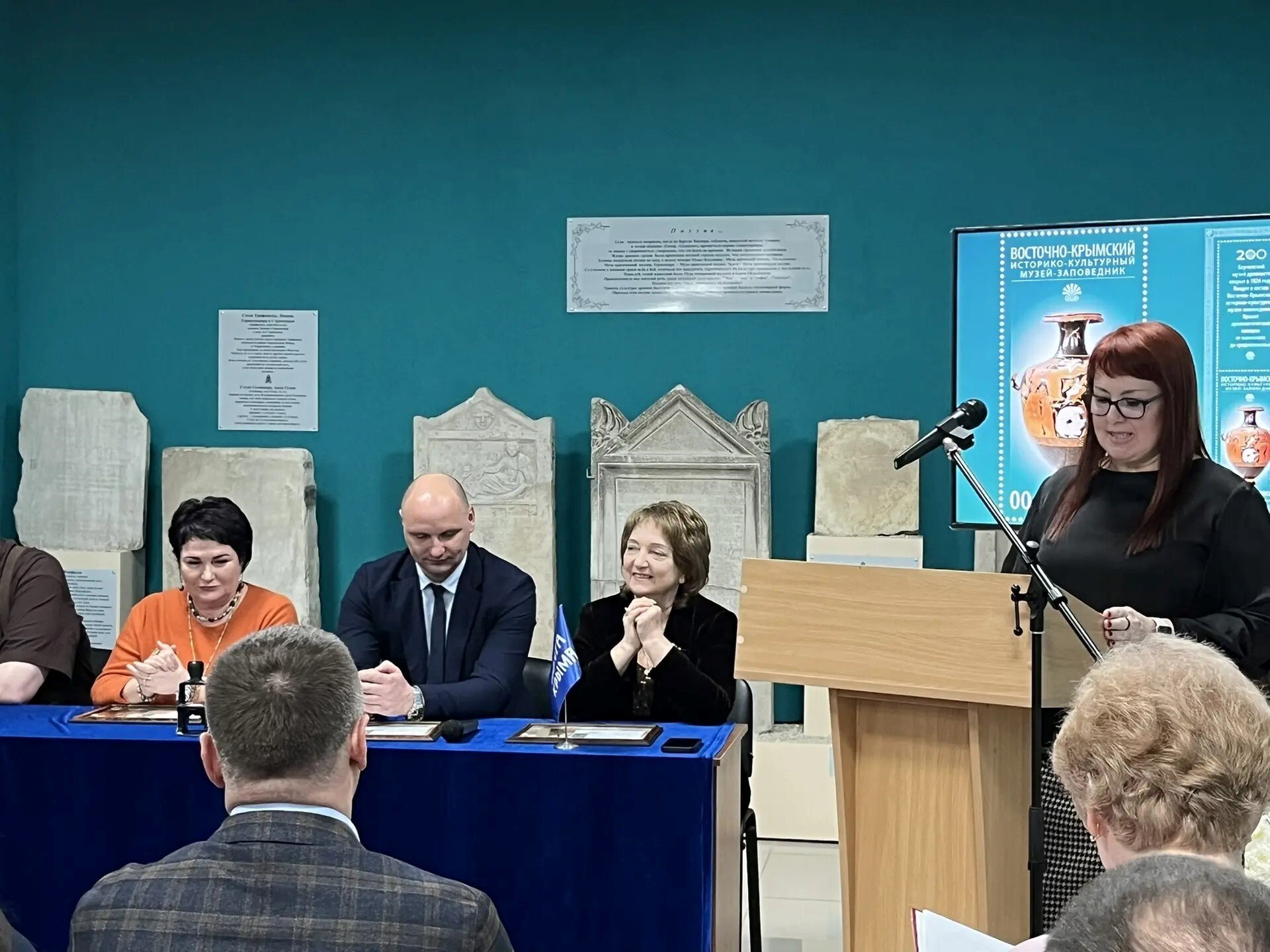 С приветственными словами в адрес участников церемонии обратилась директор Восточно-Крымского историко-культурного музея-заповедника Татьяна Умрихина: «Дорогие друзья, хочу поблагодарить всех вас, кто пришёл на самое первое значимое, зафиксированное в государственном масштабе мероприятие, посвящённое празднованию 200-летия Керченского музея древностей и пополнению знаковой серии «Сокровища музеев России». Это событие войдёт в историю нашего города! Погашенные сегодня штемпели и печати станут драгоценными экспонатами наших фондовых коллекций. Выражаю сердечную благодарность коллективу Муниципального архива города Керчи и сотрудникам «Почты Крыма»!».