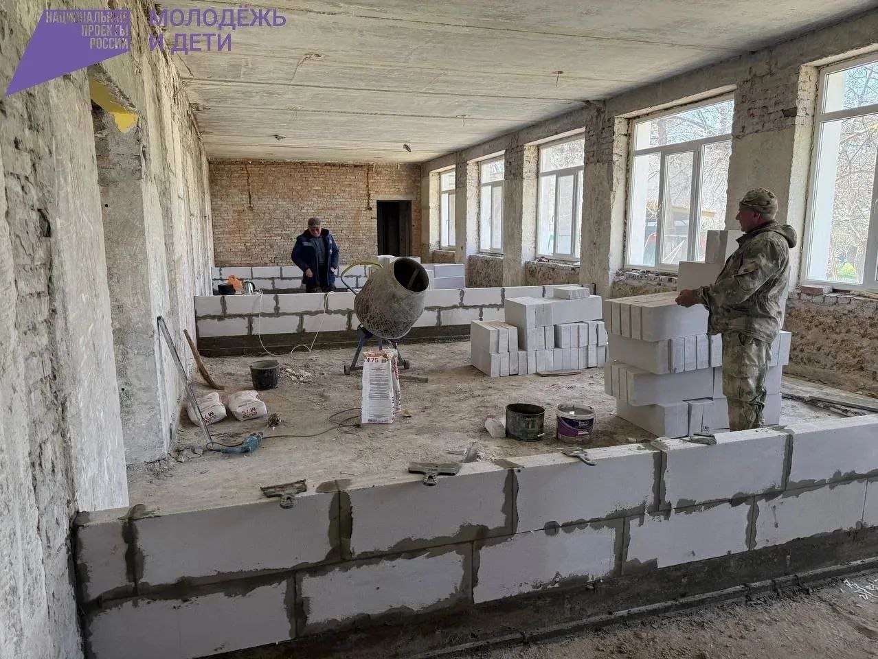 На сегодняшний день ведутся демонтажные работы, укладка перегородок, приступили к прокладке электропроводки, параллельно завозится необходимый материал.