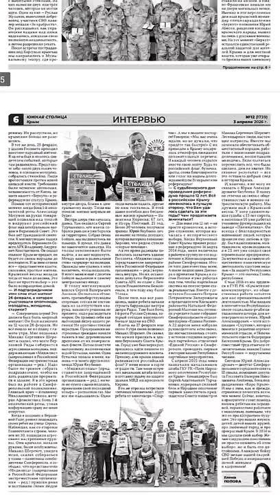 Сегодня, 3 апреля, вышел новый номер городской общественно-политической газеты «Южная столица Крым».