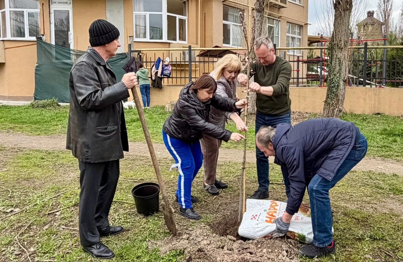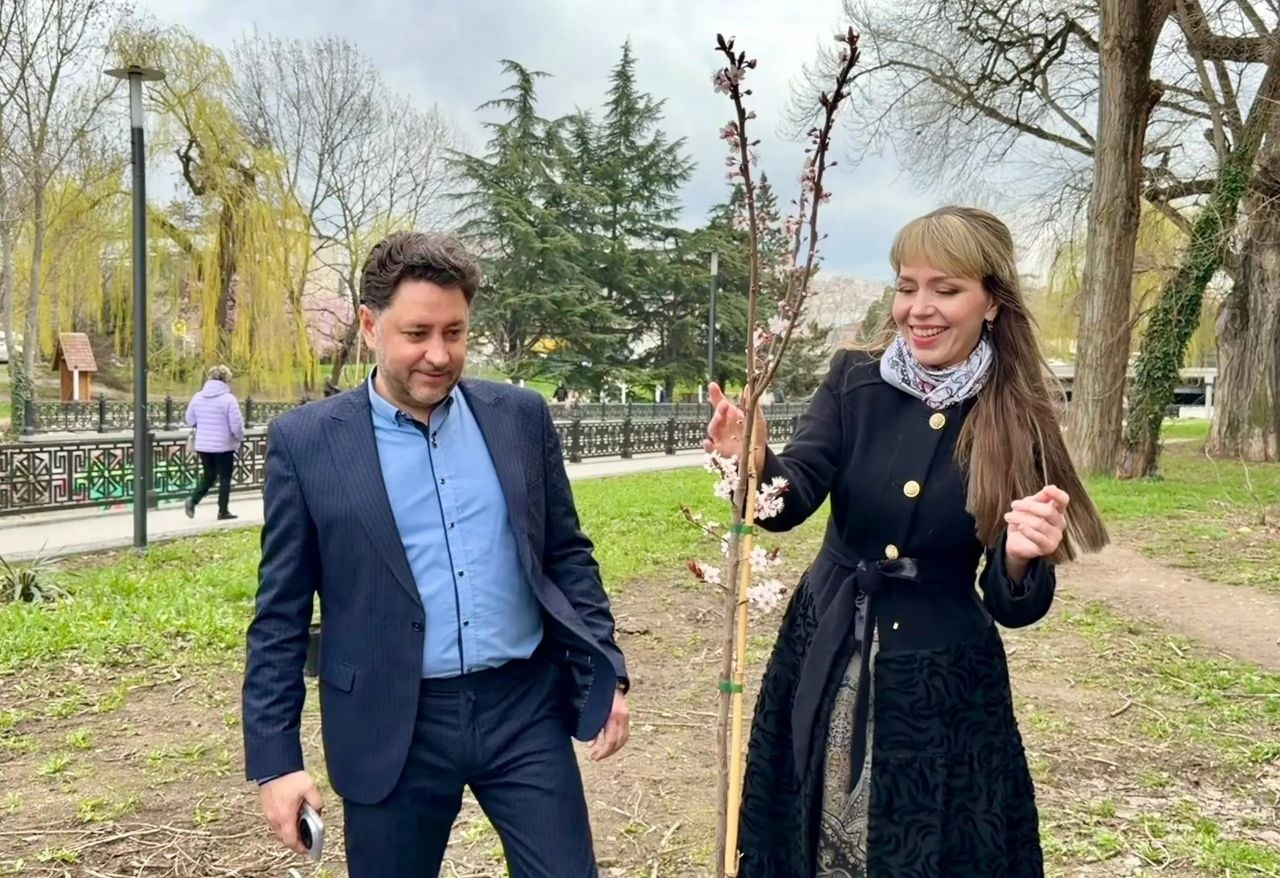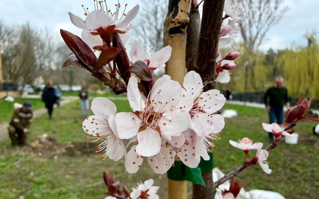 Сегодня парк украсили декоративные сливы сорта «Писсарди» как символ жизни, творчества и единения театрального сообщества Крыма. Деревья высадили в рамках всероссийского проекта «Аллеи Российского театрального общества», приуроченного к 150-летию Союза театральных деятелей России. В Крыму акцию организовало региональное отделение СТД РФ, а помощь в высадке оказали сотрудники МБУК «Парки столицы». Процесс сопровождался пением солистов крымских театров, которые одновременно брали красивые ноты и сажали деревья.