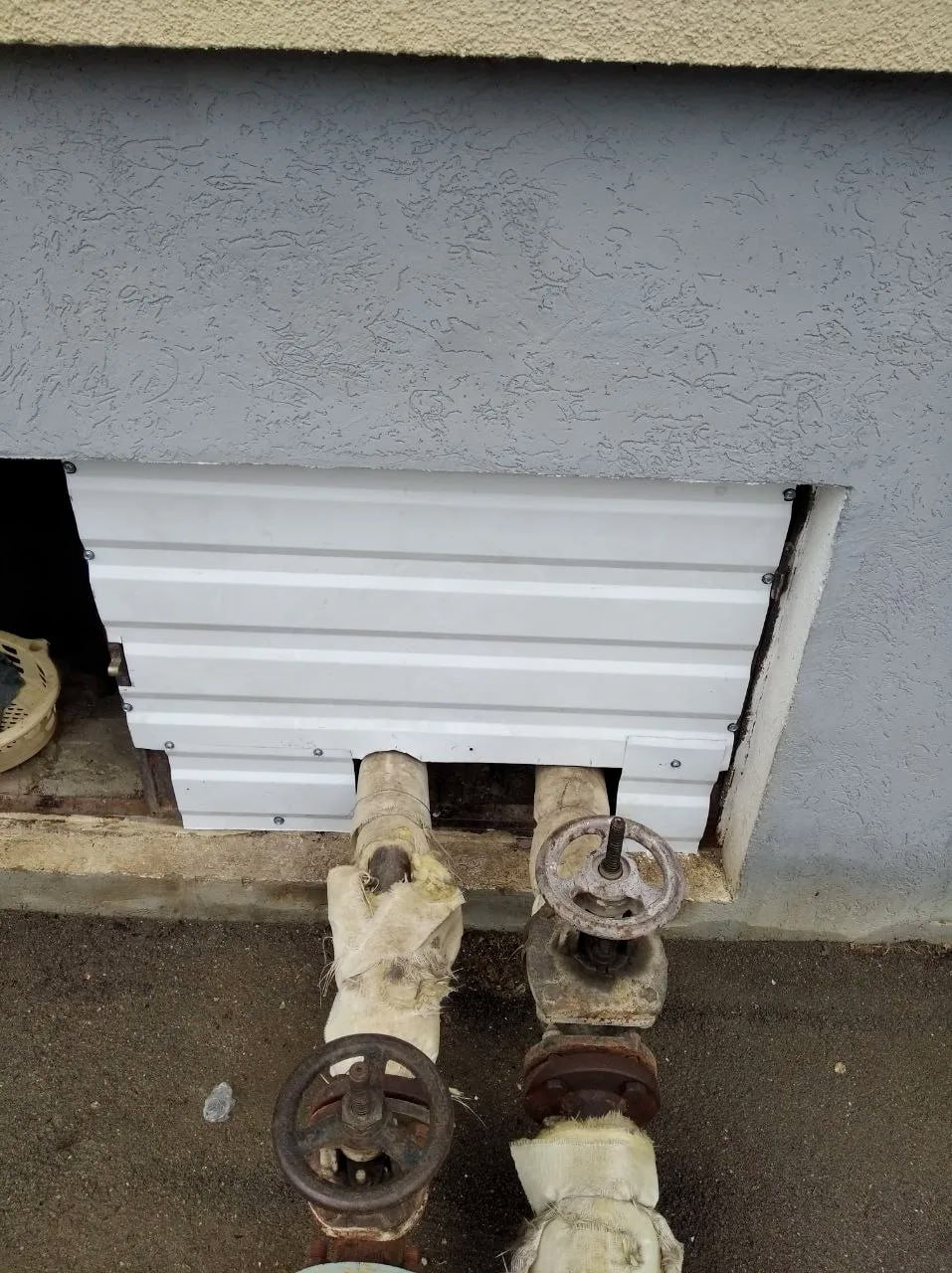 ул. Дудник, 19 — закрытие подвальных окон (вводы труб)
