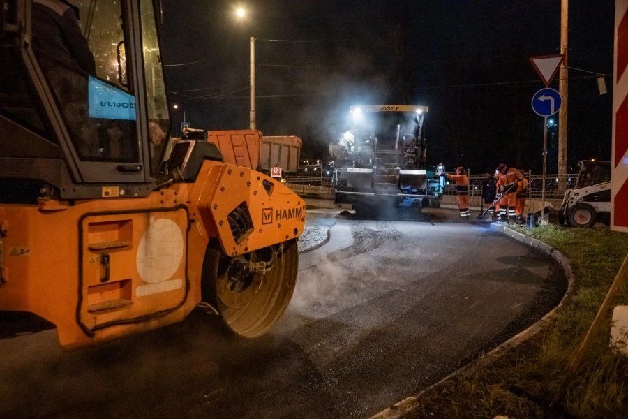 Работы ведутся ночью, чтобы не мешать движению транспорта, и идут с опережением графика. Завершить укладку покрытия планируют до конца недели.