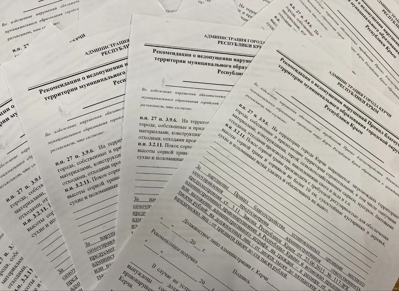 В Керчи продолжается профилактическая работа по предупреждению и выявлению нарушений Правил благоустройства. Сотрудники управления муниципального контроля регулярно выходят в рейды по частному сектору, ведут разъяснительную работу с гражданами, вручают рекомендации о недопущении нарушений обязательных требований.