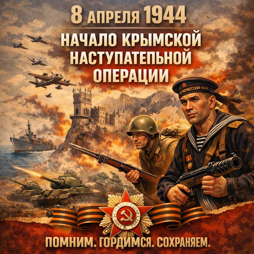 8 апреля — важная дата в истории нашей страны. Именно в этот день в 1944 году началась Крымская наступательная операция — одно из ключевых сражений Великой Отечественной войны.