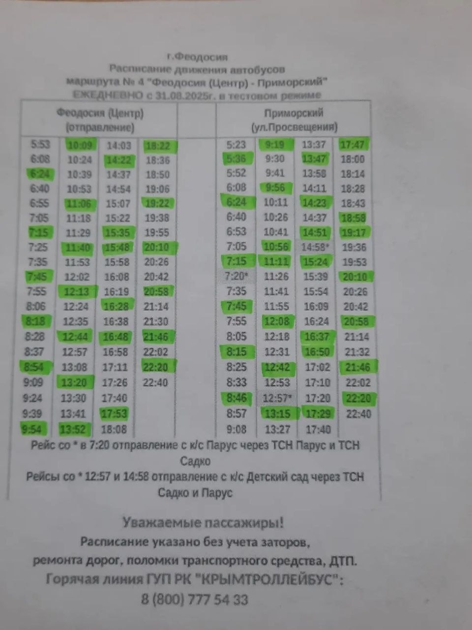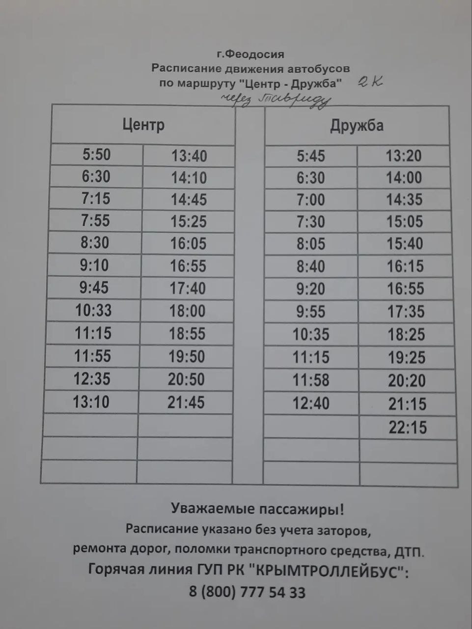 Актуальное расписание движения автобусов по маршрутам №4 и №2 в Феодосии