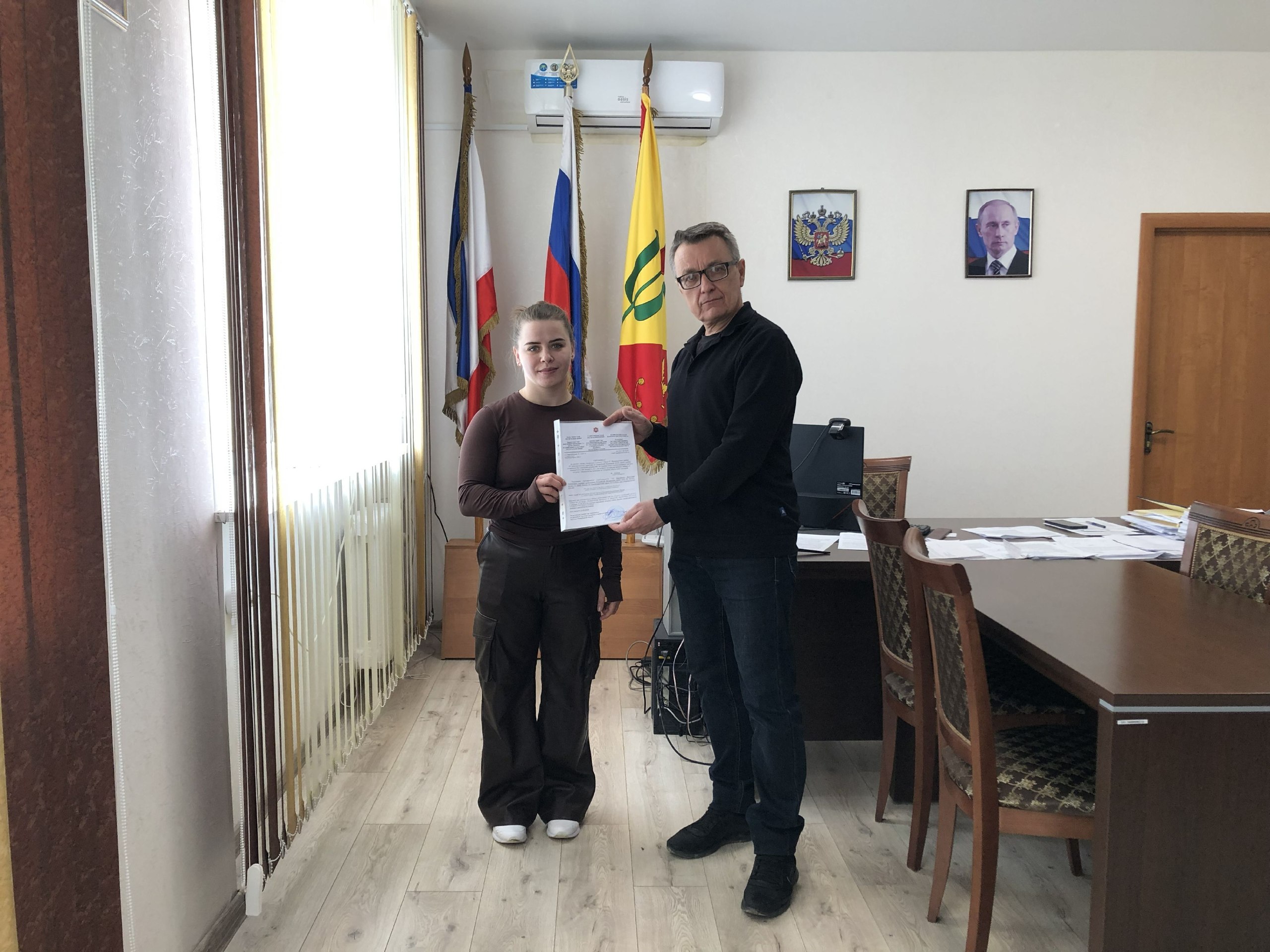 Сегодня глава администрации Олег Бурлака вручил сертификат на приобретение благоустроенного жилого помещения в собственность одной из юных горожанок.