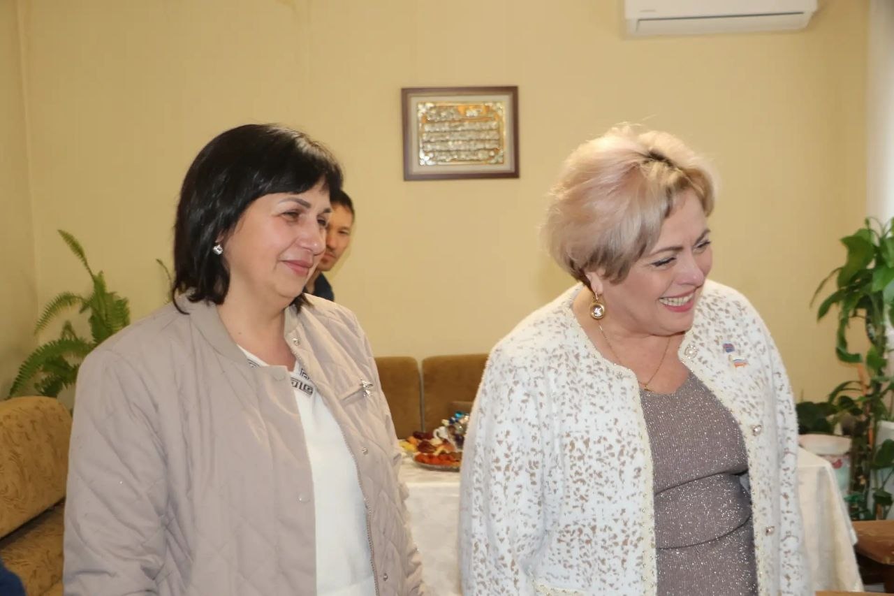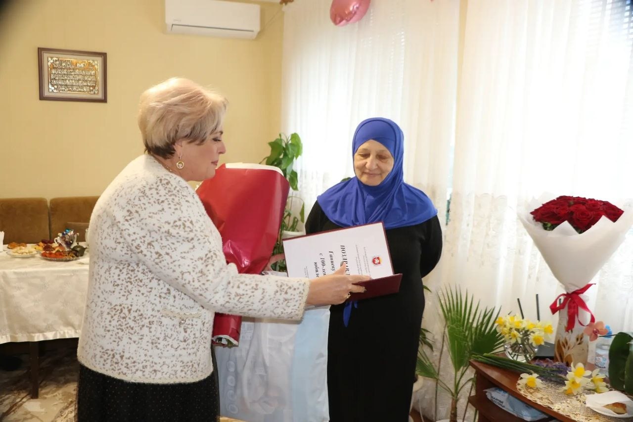 Поздравили уважаемую Ганиеву Рабию совместно с главой Куйбышевского сельского поселения Ларисой Щодрак.