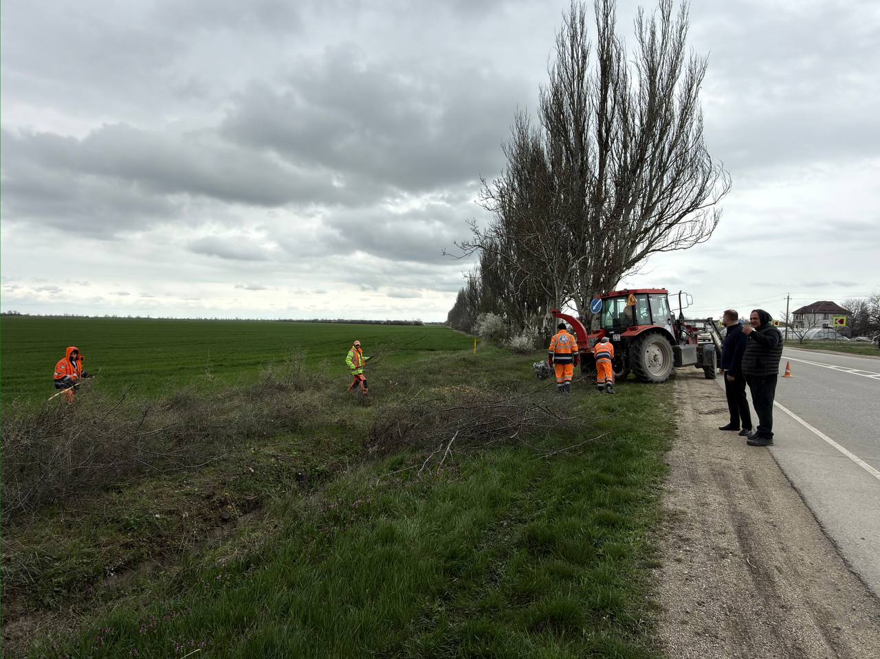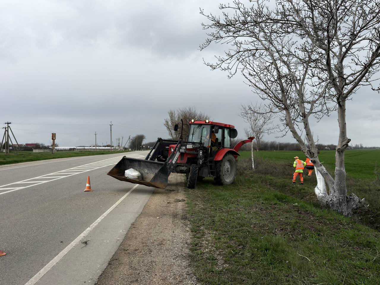 В рамках комплекса работ по содержанию и благоустройству территории вдоль автодороги Нижнегорский - Белогорск проводятся мероприятия по санитарной очистке и обрезке деревьев вдоль обочин. Работы осуществляются сотрудниками районного филиала Службы автомобильных дорог.