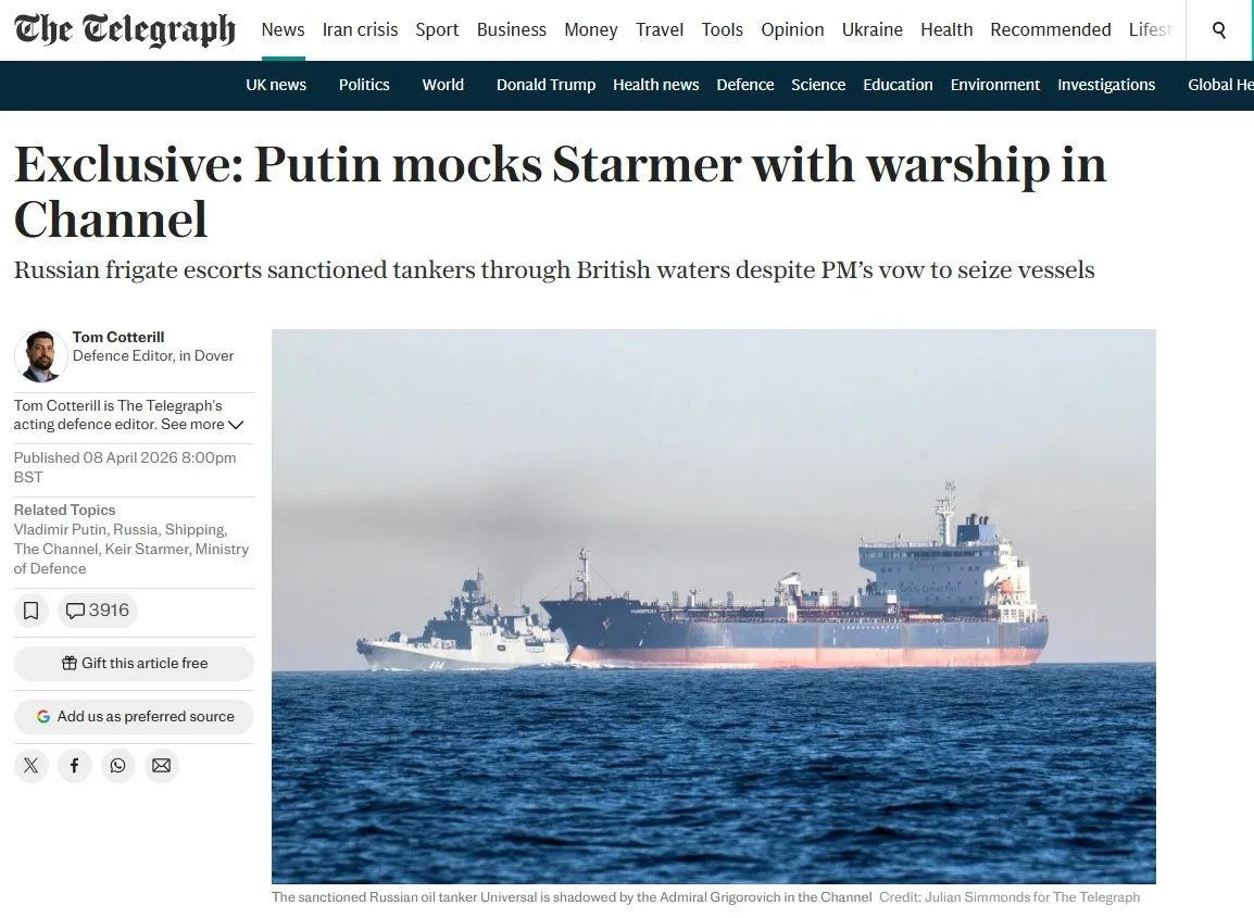За ними следовал корабль ВМС Великобритании, однако не предпринял никаких действий, несмотря на обещание премьер-министра Кира Стармера захватывать "теневой флот".
