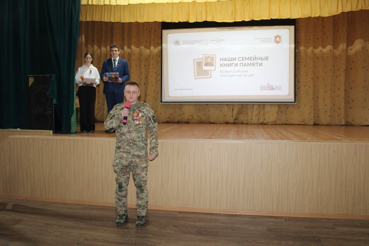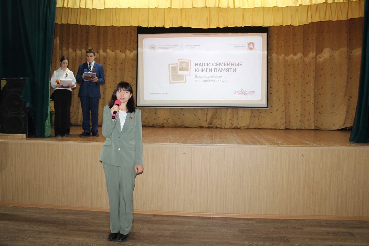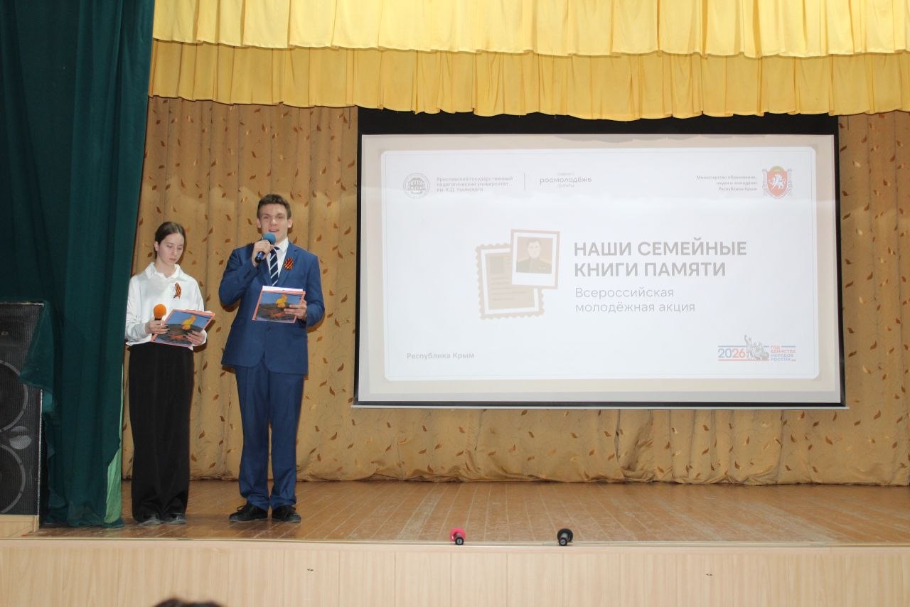 8 апреля в актовом зале МОУ «Школа № 2 имени Героя Советского Союза Андрея Ивановича Еременко» города Алушты состоялся муниципальный этап Всероссийской молодёжной акции «Наши семейные книги памяти».