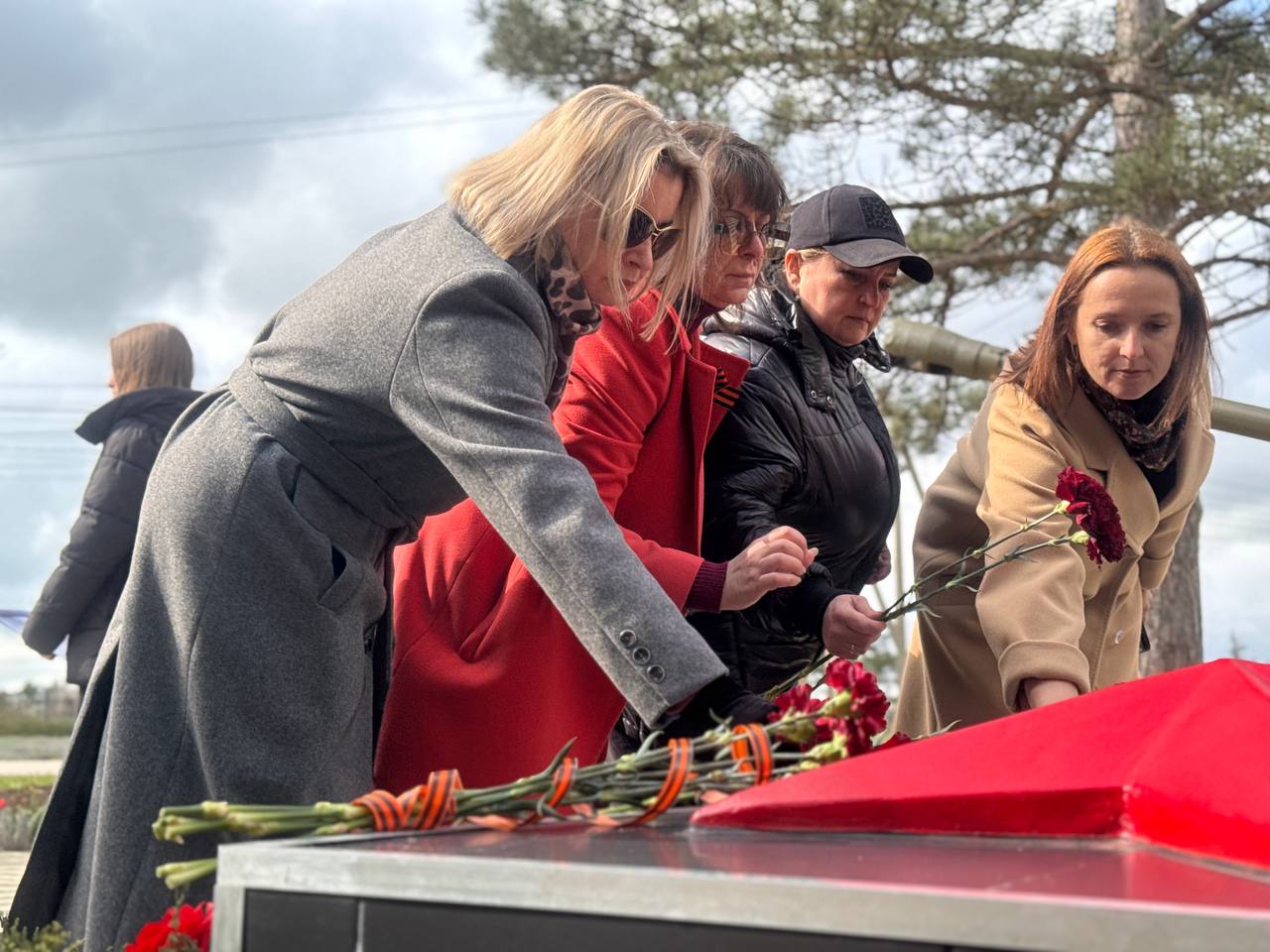 Присутствующие почтили память погибших минутой молчания и возложили цветы к памятному знаку.