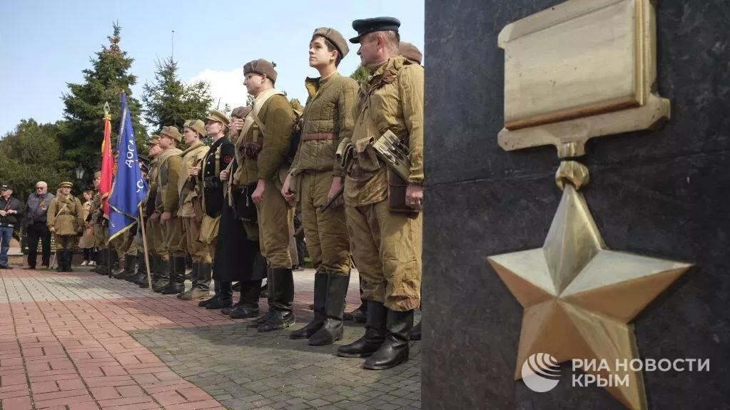 Также прошел торжественный митинг на горе Митридат, после которого открыли Вахту Памяти и провели акцию "Дорогами освободителей".