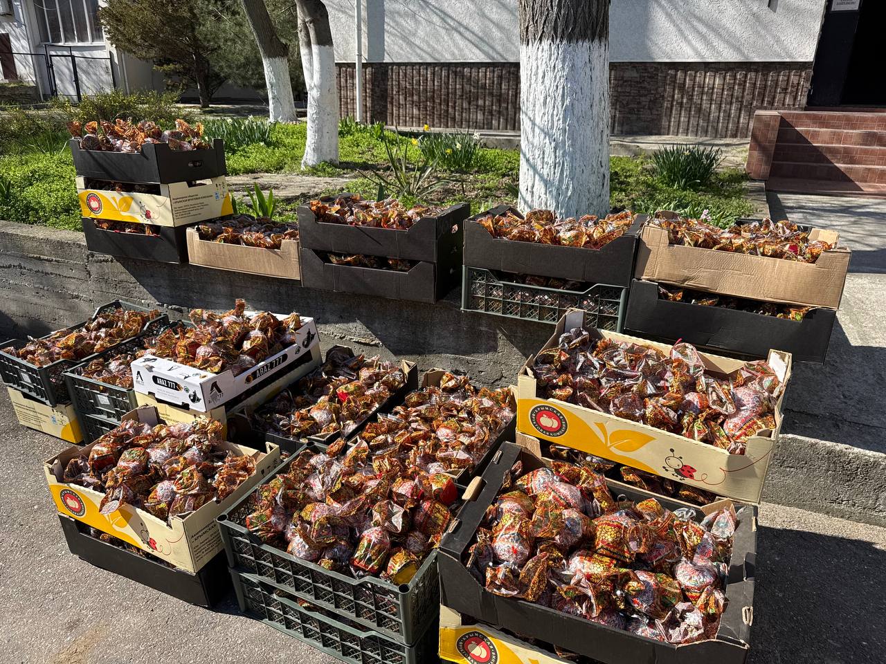 В этом году передали солдатам-срочникам и защитникам Тарханкута 1500 штук куличей. Все пасхи были освящены в храме святых и праведных Захарии и Елисаветы, чтобы каждый кулич хранил частичку благодати и тепла.