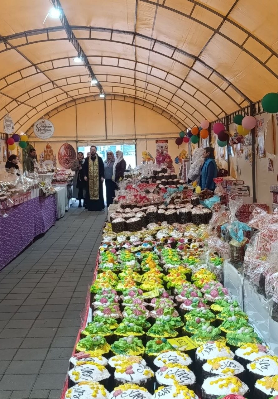 В преддверии праздника Светлой Пасхи вместе с протоиереем Дмитрием посетили праздничную ярмарку на площади Советской. На месте были освящены пасхальные куличи.