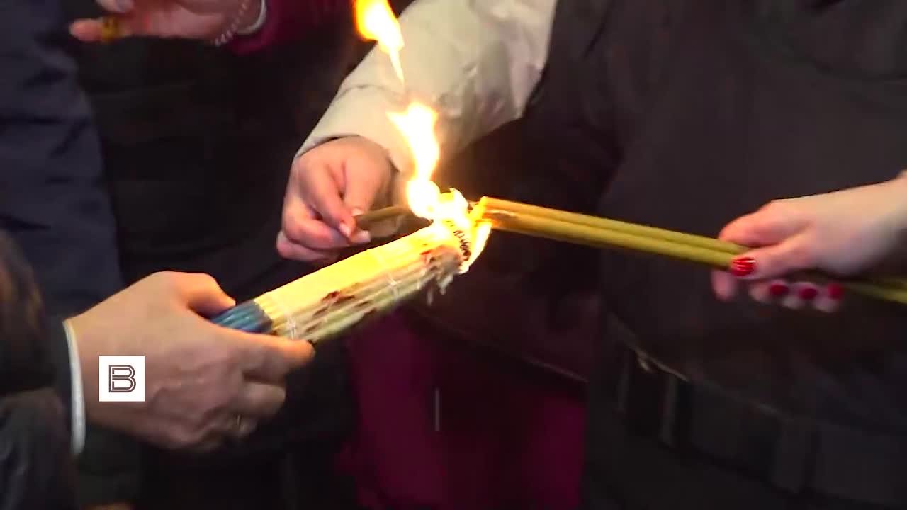 Благодатный огонь привезли из Иерусалима в храм Христа Спасителя к Пасхальному богослужению. Его частицы также отправились в храмы других городов России.