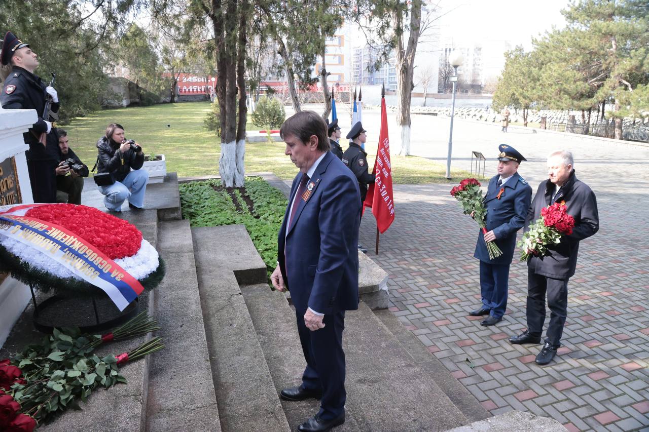 В памятных мероприятиях, которые в этот день прошли в крымской столице, принял участие первый заместитель Председателя Государственного Совета Республики Крым Сергей Цеков. Вместе с депутатами крымского парламента Александром Комбаровым и Игорем Федотовым, советником главы Госсовета РК Ефимом Фиксом, руководством Симферополя, представителями общественных организаций и горожанами он возложил цветы к обелиску на Симферопольском Воинском Кладбище и почтил минутой молчания память советских воинов, павших в боях за свободу и независимость Родины в Великой Отечественной войне 1941-1945.