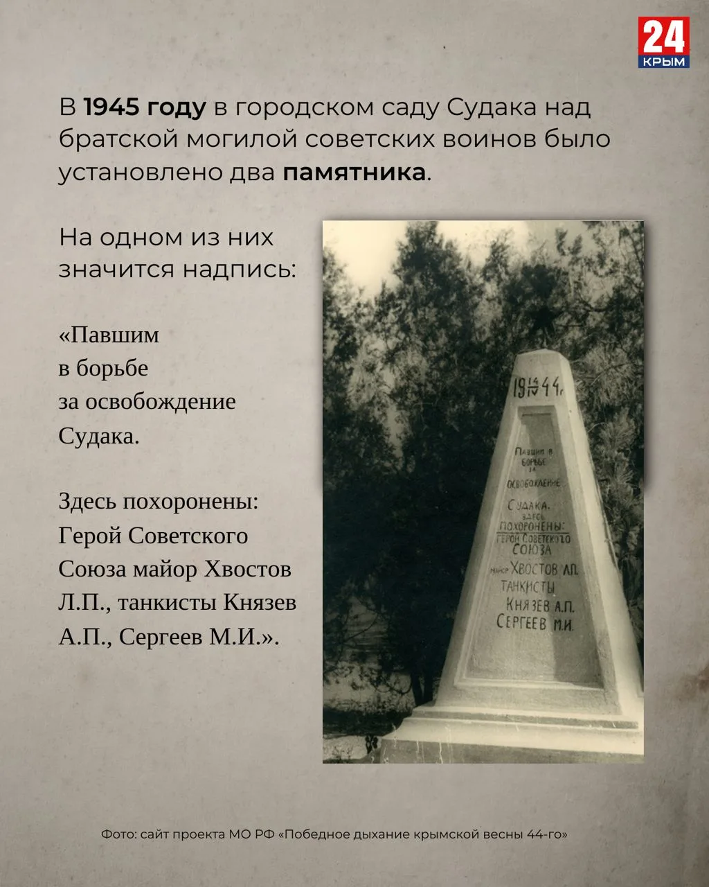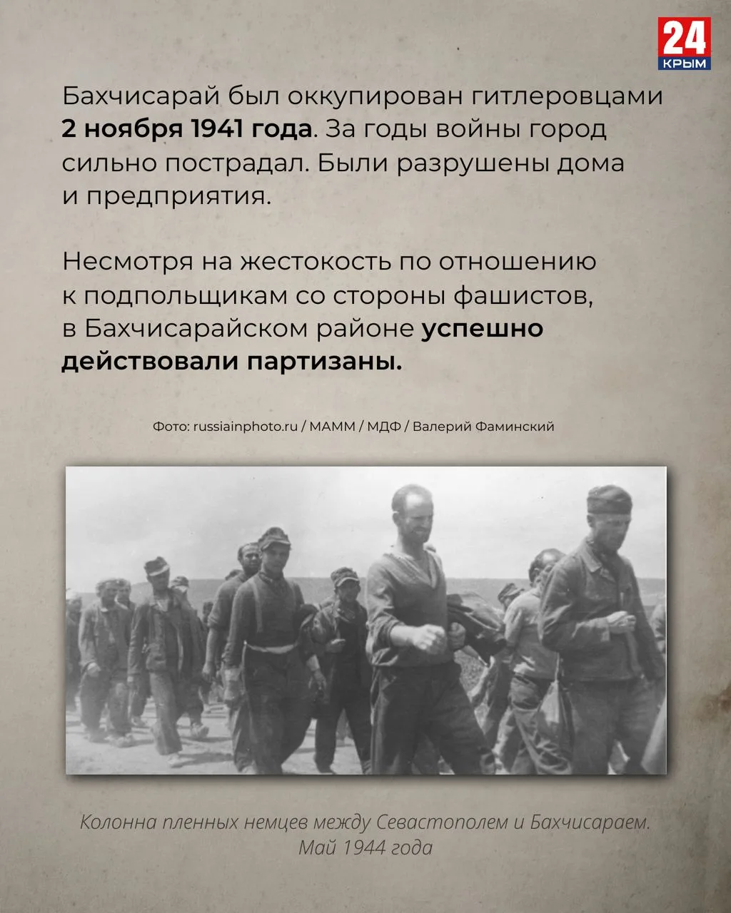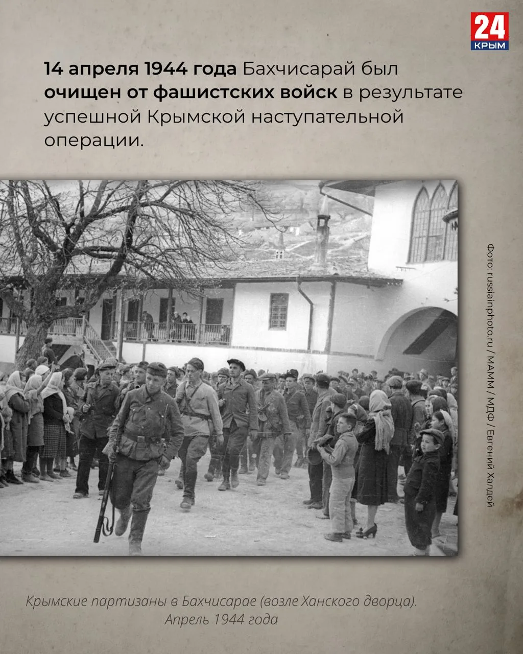 14 апреля 1944 года советские войска освободили Бахчисарай и Судак от немецко-фашистских захватчиков