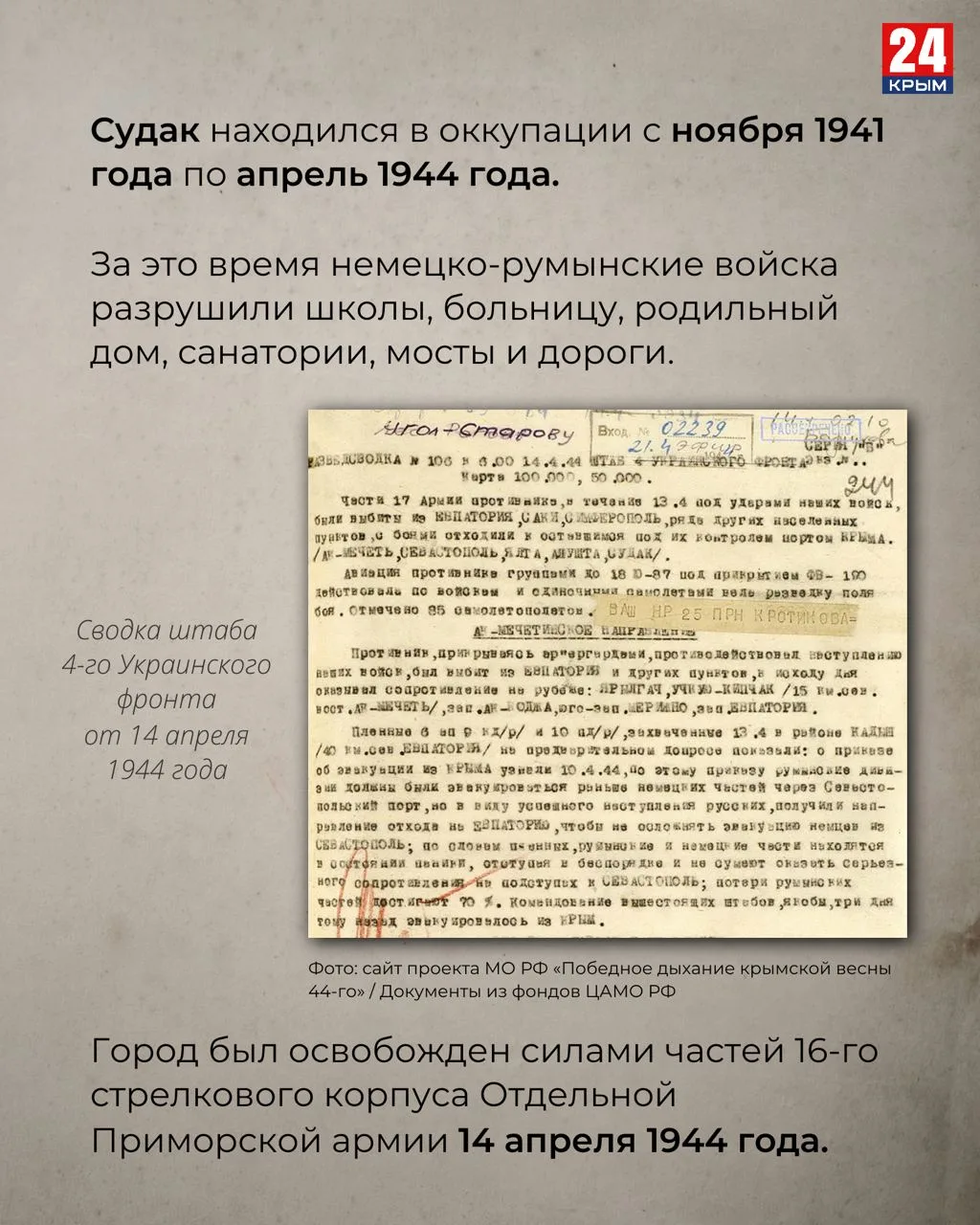 Об освобождении городов Крыма рассказали в карточках.